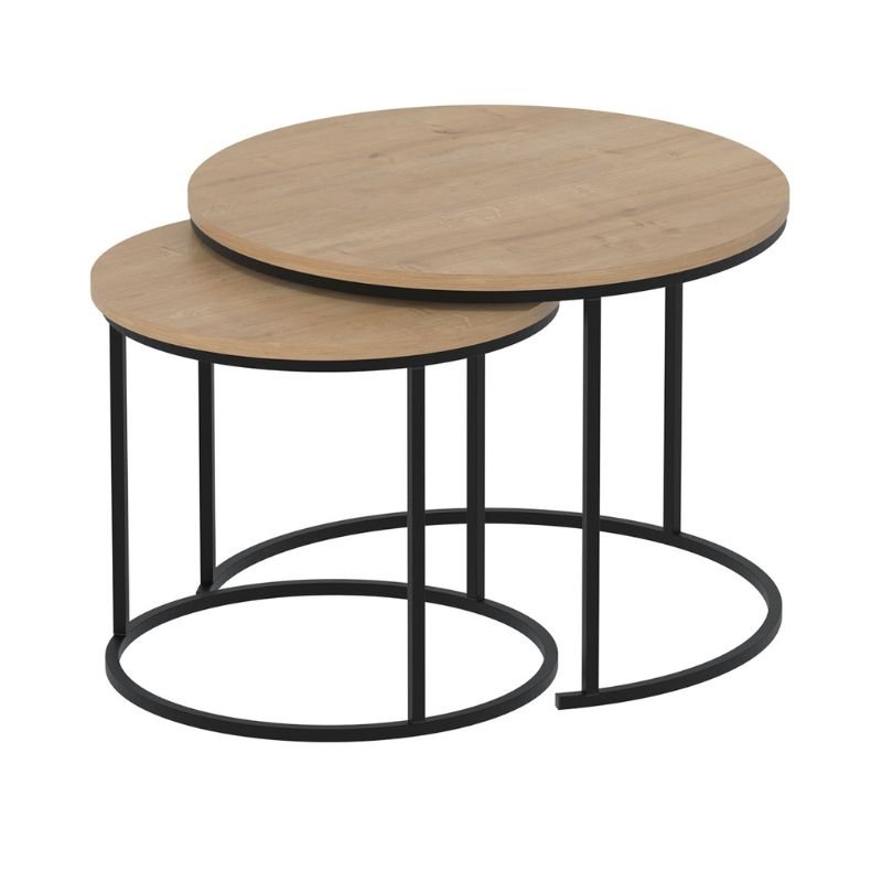 Τραπεζάκι σαλονιού σετ 2 τμχ Hilal Megapap χρώμα sapphire oak Ø66×49,5εκ.