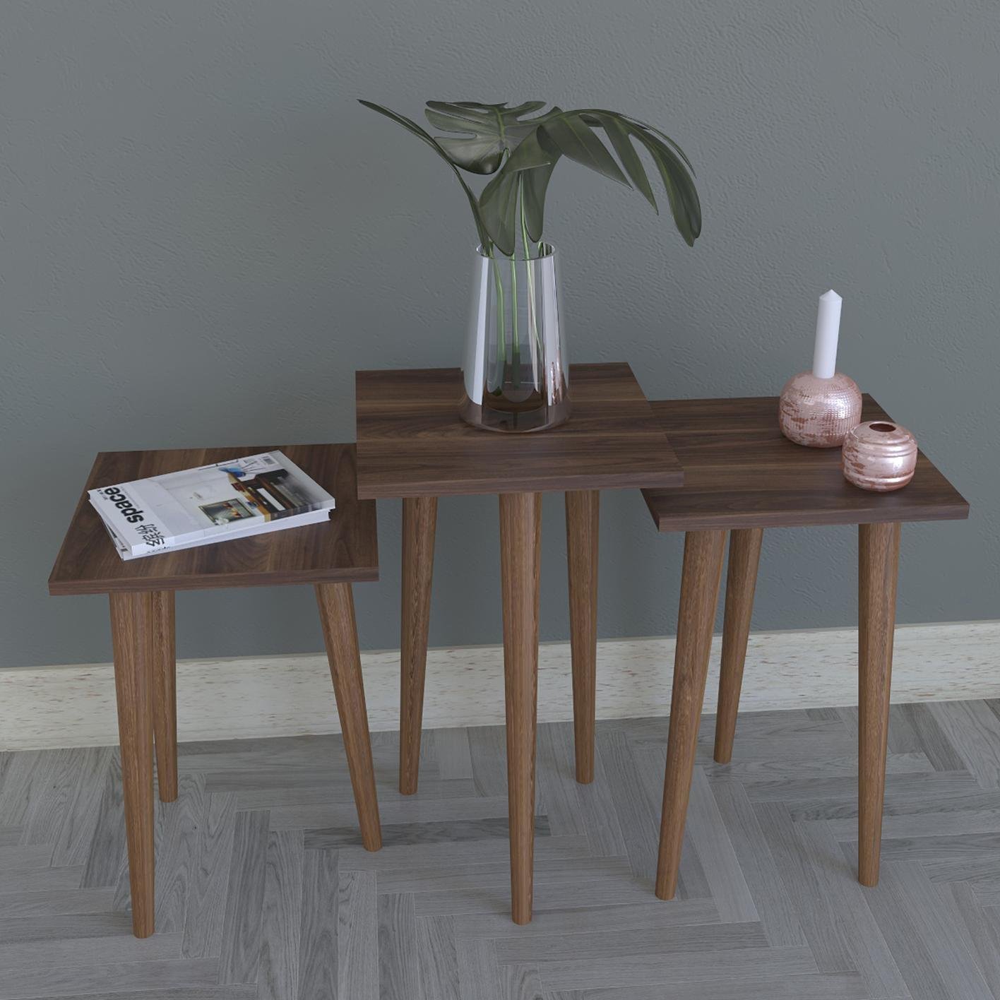 Τραπεζάκι Βοηθητικό ArteLibre ZURI Καρυδί Μοριοσανίδα/Ξύλο 33x33x52/33x33x47/33x33x42cm Σετ 3Τμχ