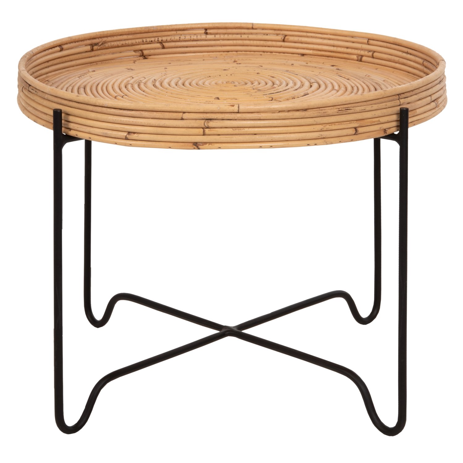 ΤΡΑΠΕΖΑΚΙ ΒΟΗΘΗΤΙΚΟ FLY HM7907 RATTAN ΦΥΣΙΚΟ ΧΡΩΜΑ-ΜΕΤΑΛΛΙΚΗ ΒΑΣΗ ΜΑΥΡΗ Φ50×40Υεκ.