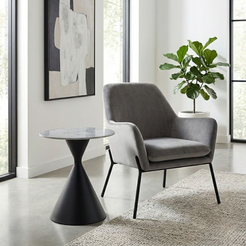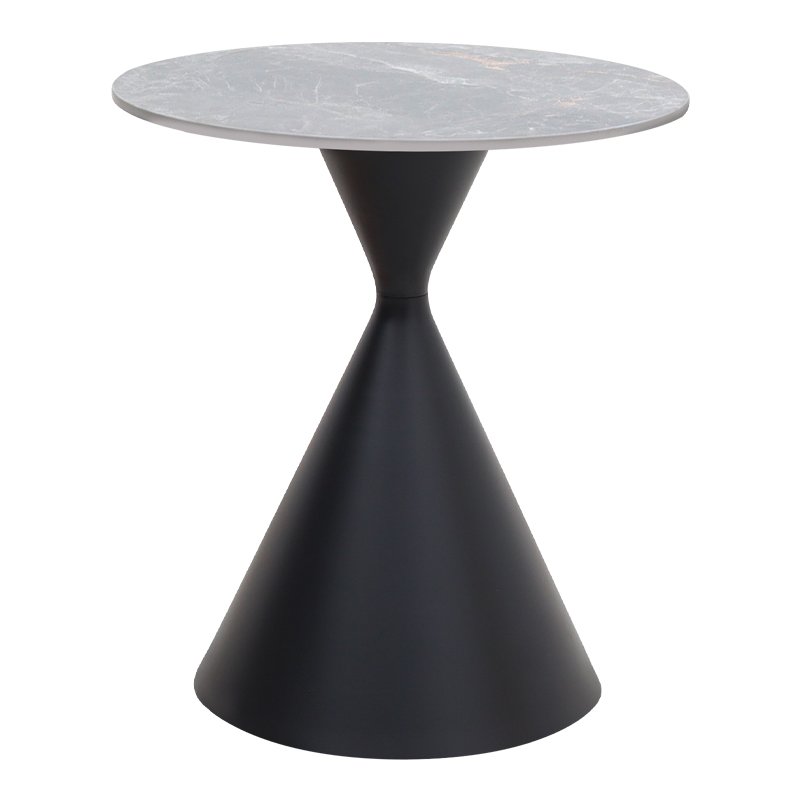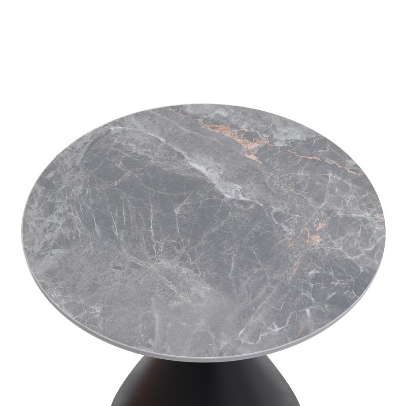 Τραπεζάκι βοηθητικό Logan Megapap sintered stone – μέταλλο χρώμα γκρι εφέ μαρμάρου – μαύρο Ø50×56εκ.