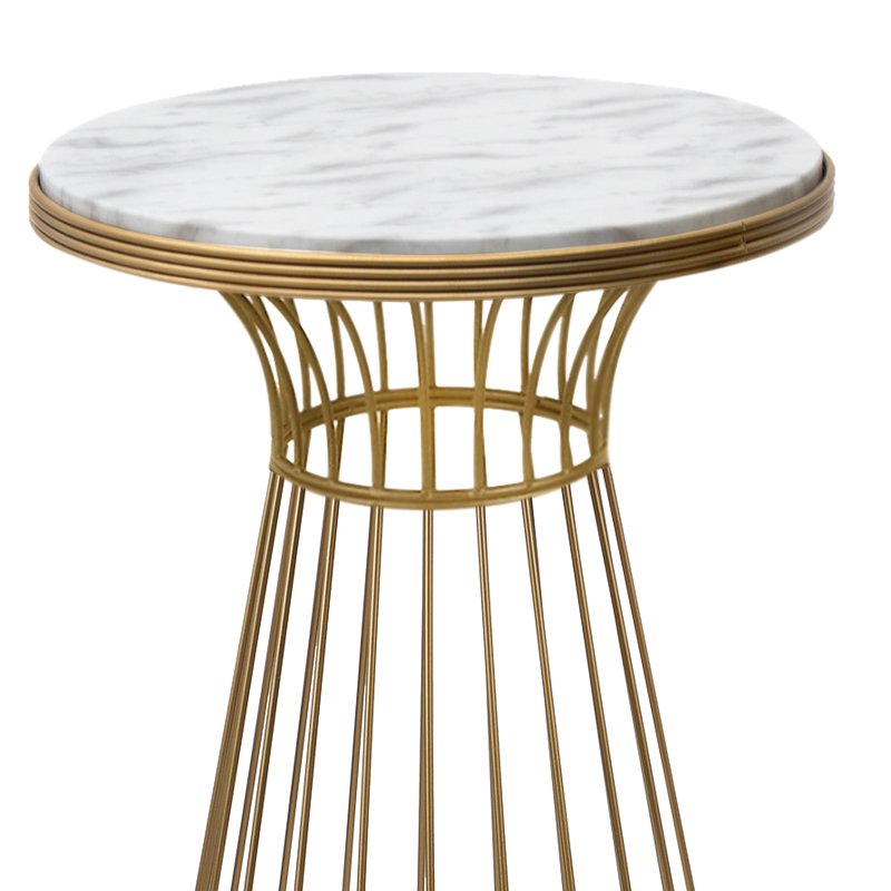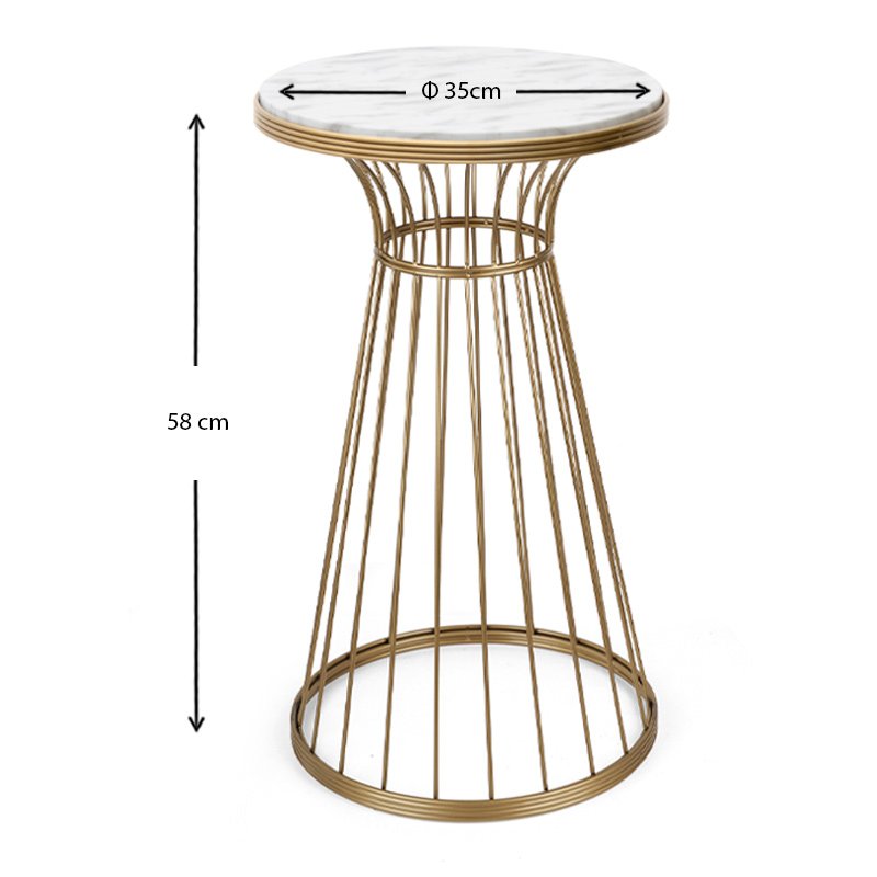 Τραπεζάκι βοηθητικό Tekosi Megapap μεταλλικό – Mdf χρώμα χρυσό – λευκό εφέ μαρμάρου 35x35x58εκ.