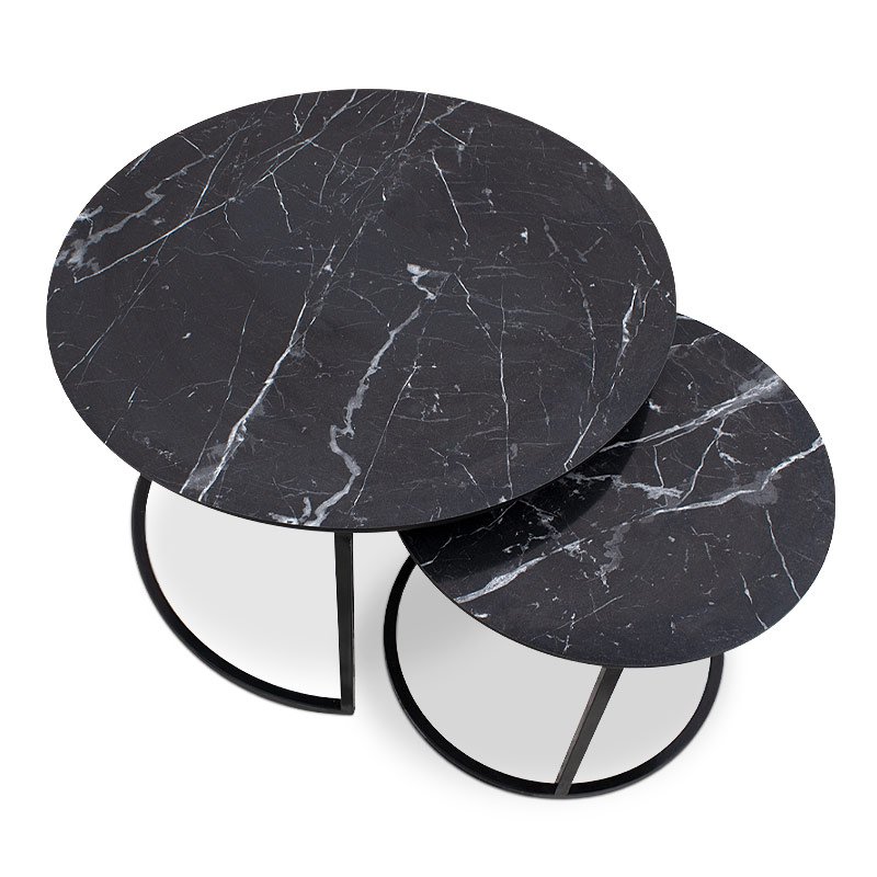 Τραπεζάκια σαλονιού Gary Megapap Mdf – μεταλλικό χρώμα μαύρο εφέ μαρμάρου 65x65x44εκ.