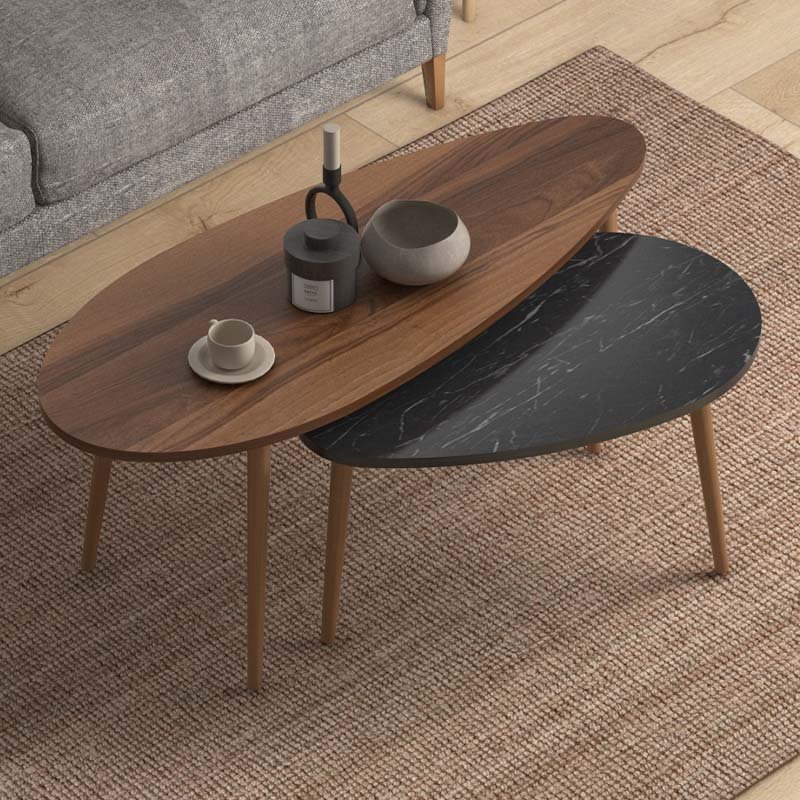 Τραπεζάκια βοηθητικά Elips Megapap χρώμα καρυδί – μαύρο εφέ μαρμάρου 116x46x46εκ.