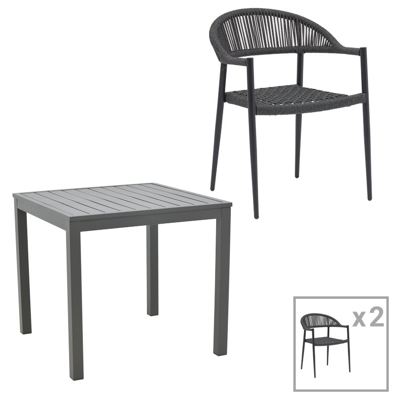 Τραπεζαρία Kliton-Freiburg σετ 3τεμ pakoworld αλουμίνιο σε ανθρακί απόχρωση 80x80x74εκ
