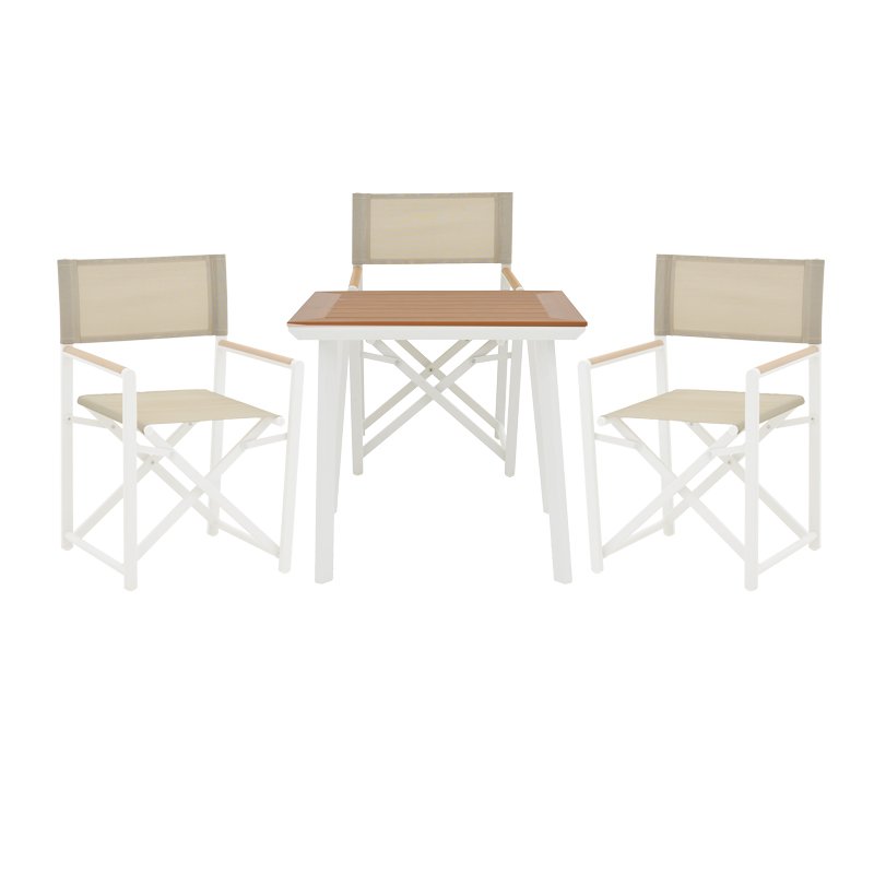 Τραπεζαρία Mabu-Synergy σετ 3τεμ pakoworld λευκό αλουμίνιο και plywood σε φυσικό χρώμα 80x80x74εκ