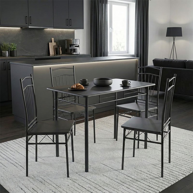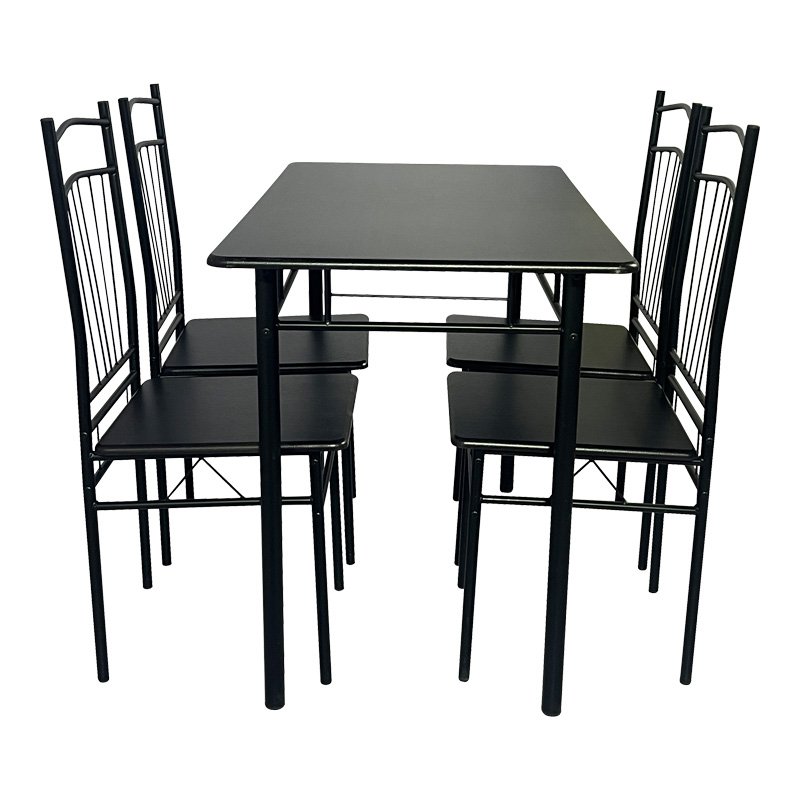 Τραπεζαρία Reforia pakoworld σετ 5τμχ mdf σε μαύρη απόχρωση με μαύρα μεταλλικά πόδια 110x60x74εκ