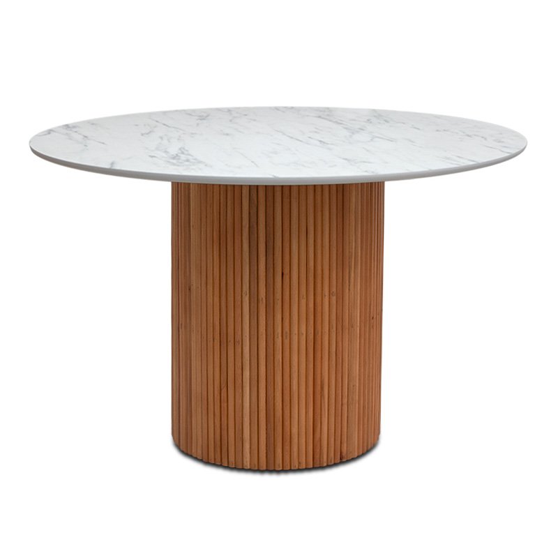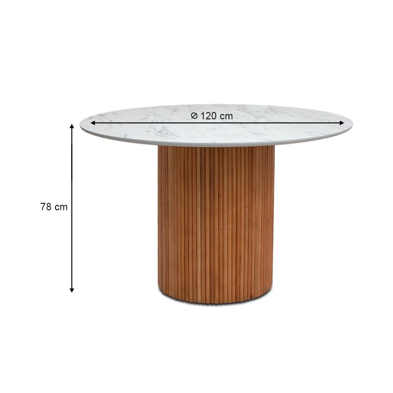 Τραπέζι Borno Megapap χρώμα φυσικό – λευκό εφέ μαρμάρου Ø120×78 εκ.