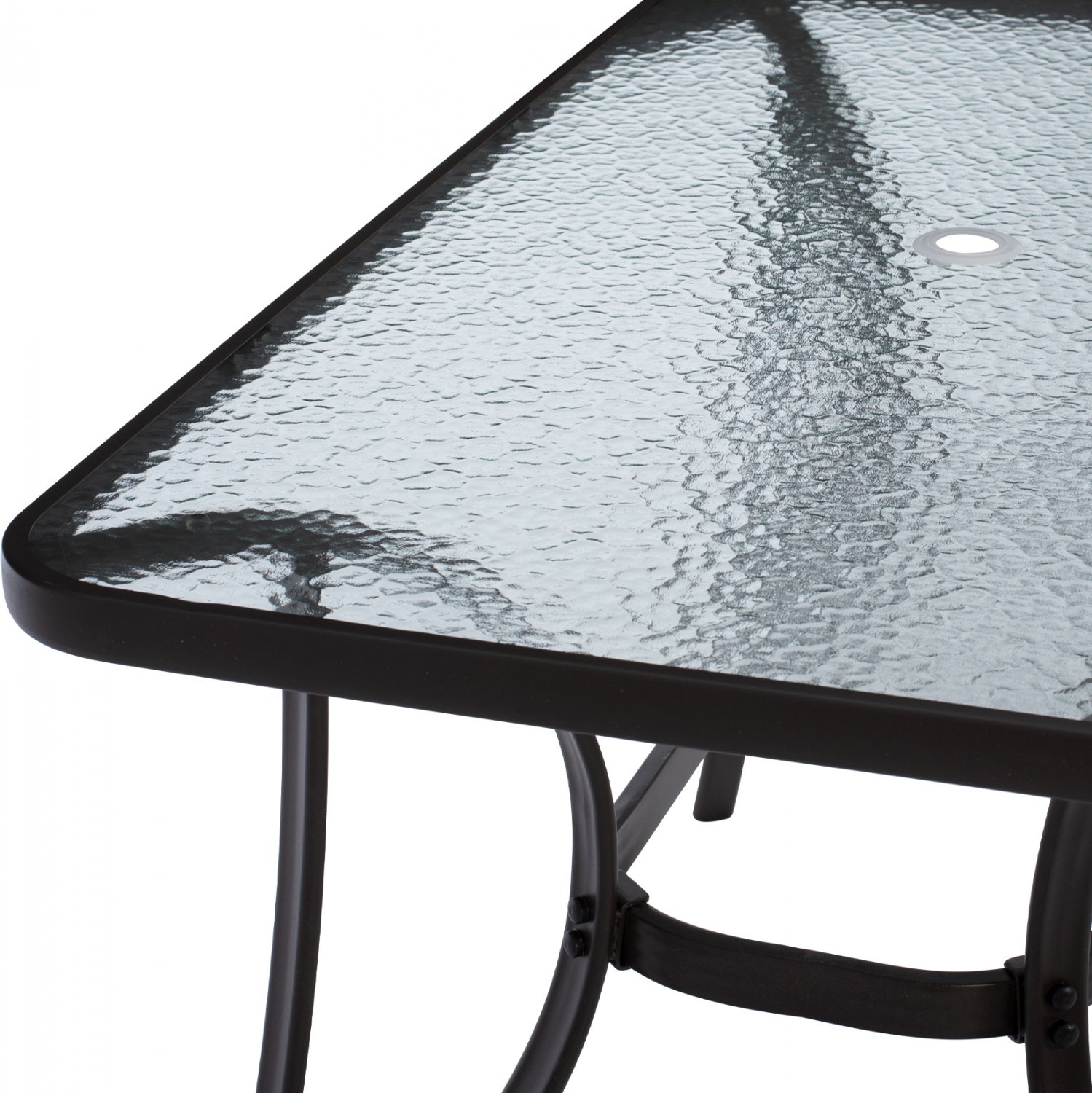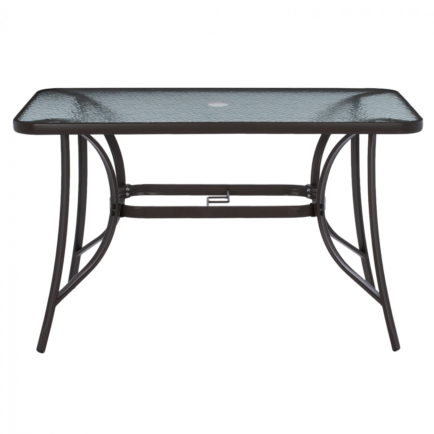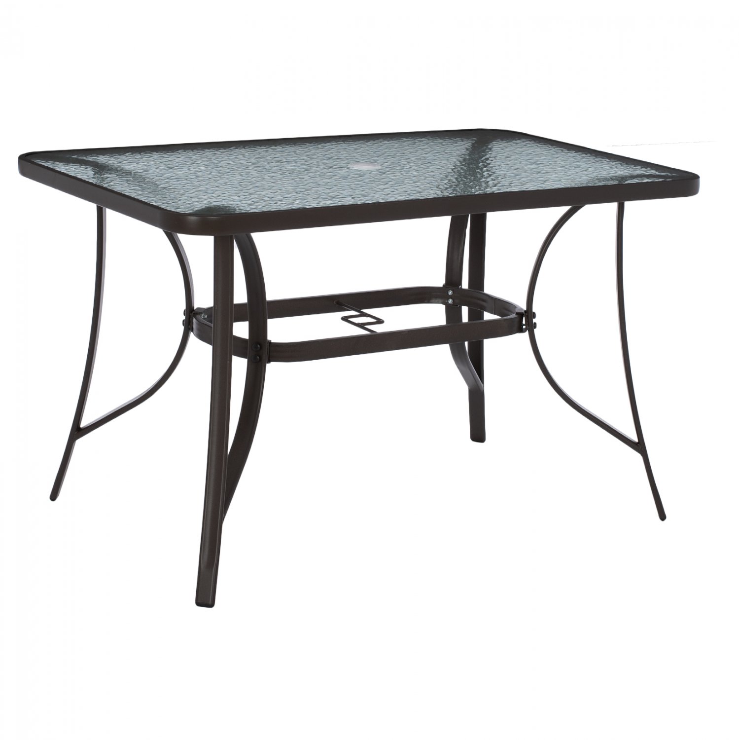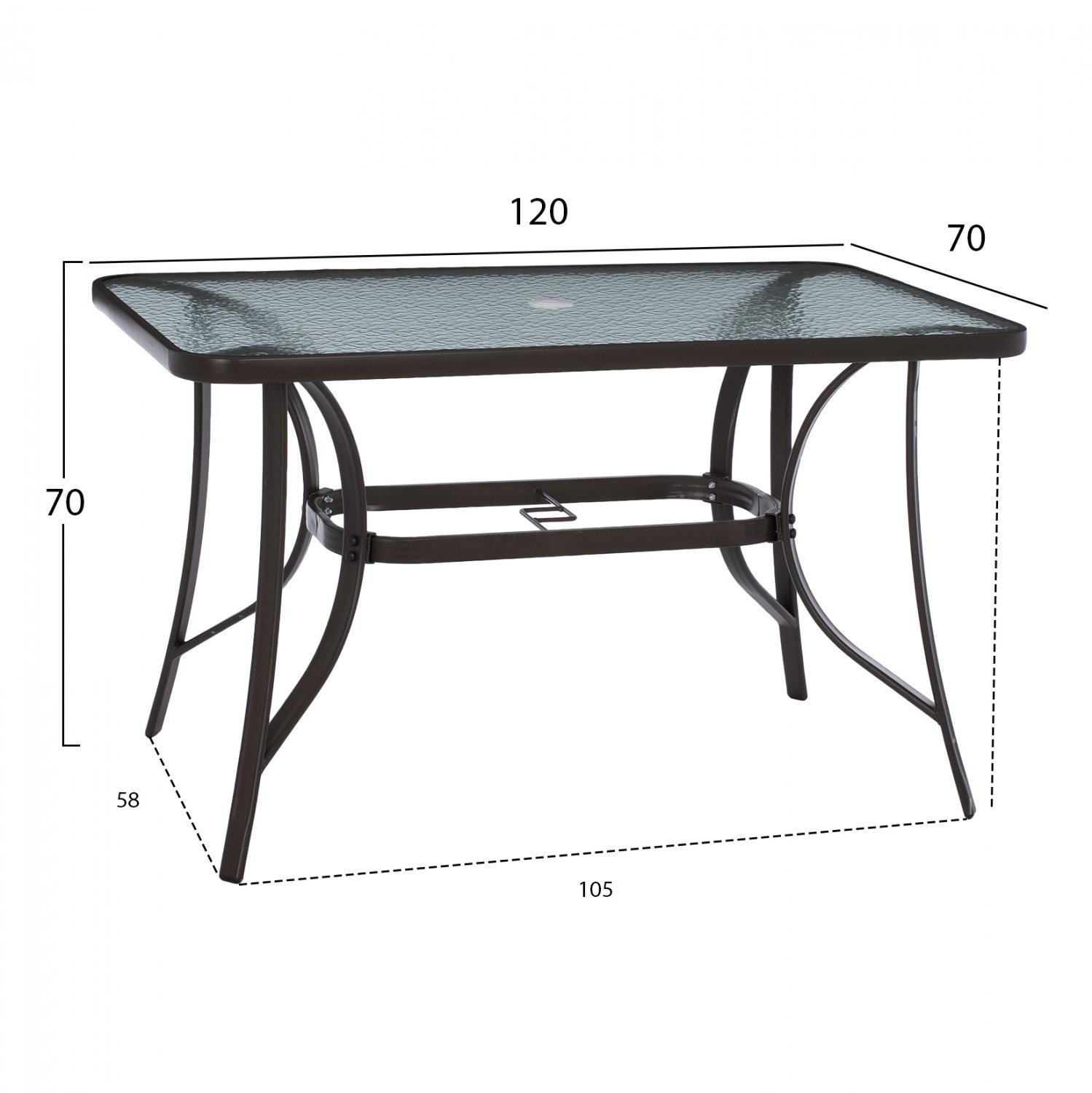 ΗΜ5021.12 Τραπέζι BRAVO εξωτερικού χώρου με ΚΑΦΕ μεταλλικό σκελετό και γυάλινη θολή επιφάνεια! Πρόκειται για πολύ δημοφιλές τραπέζι που δεν λείπει σχεδόν από κανέναν μπαλκόνι ή κήπο. Το BRAVO μάλιστα έρχεται και με τρύπα στο κέντρο για τοποθέτηση ομπρέλας. Είναι ορθογώνιο με γωνίες στρογγυλεμένες ενώ το γυαλί της επιφάνειας είναι ενισχυμένο.
