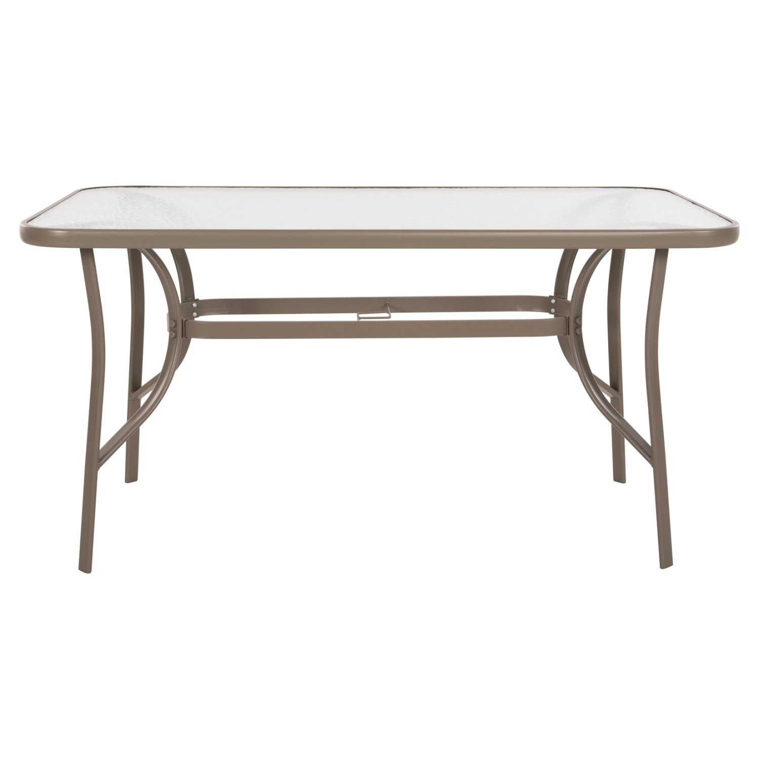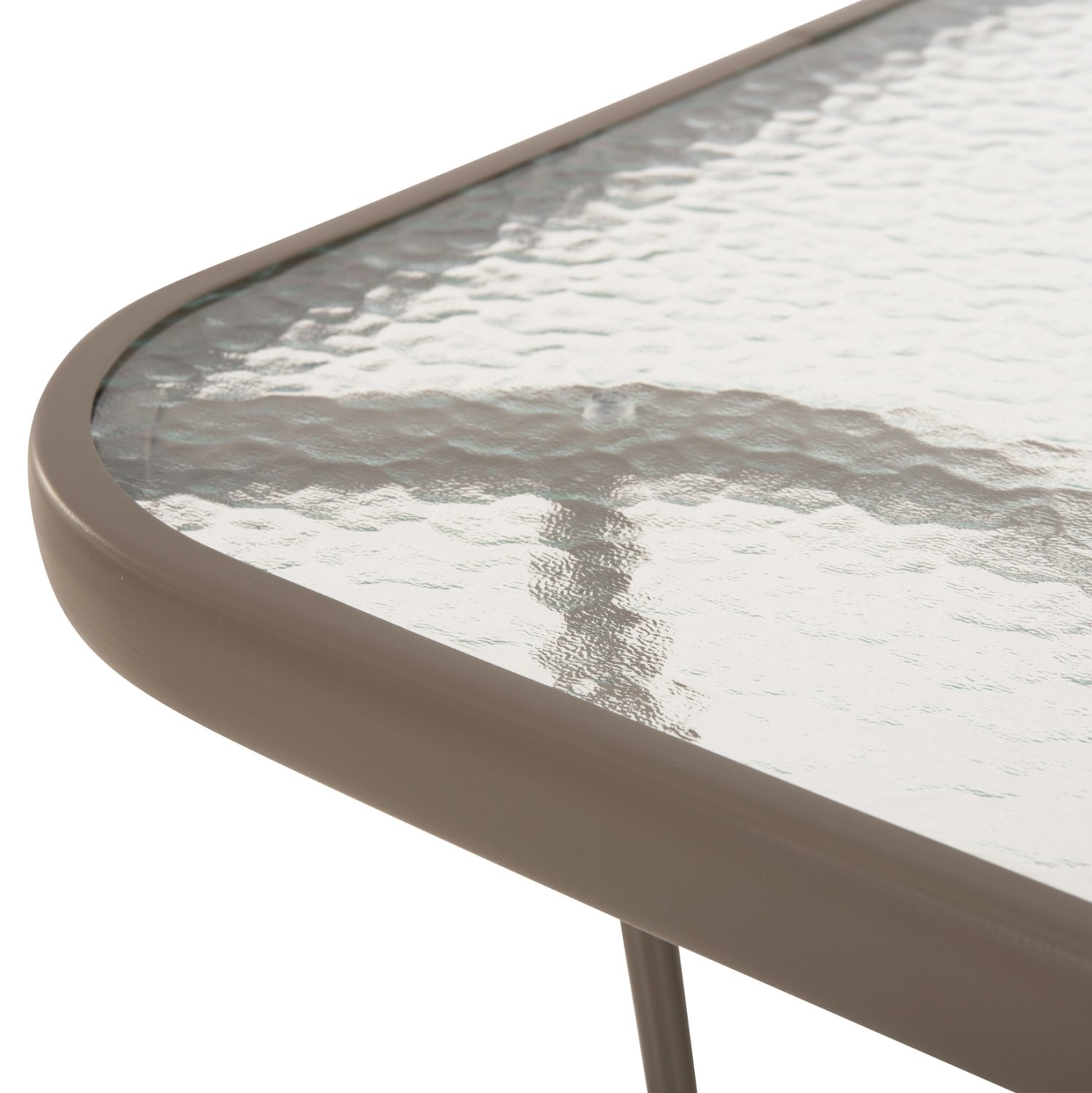 Το τραπέζι BRUNO εξωτερικού χώρου έχει ΣΑΜΠΑΝΙ μεταλλικό σκελετό και γυάλινη θολή επιφάνεια! Πρόκειται για πολύ δημοφιλές τραπέζι που δεν λείπει σχεδόν από κανέναν μπαλκόνι ή κήπο. Είναι ορθογώνιο με γωνίες στρογγυλεμένες ενώ το γυαλί της επιφάνειας είναι ενισχυμένο.