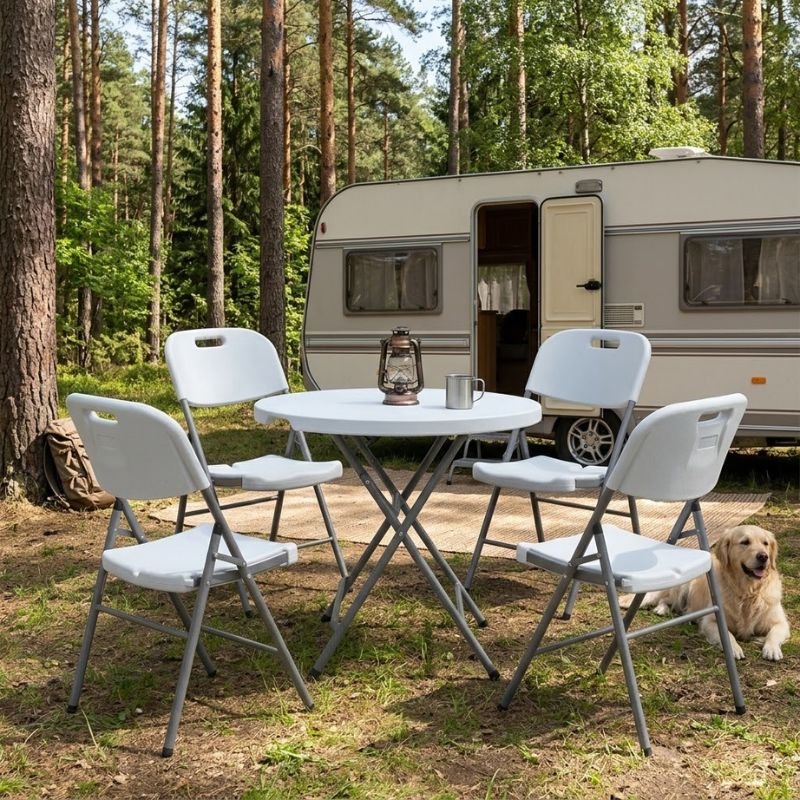 - Μονοκόμματη στρογγυλή επιφάνεια κατασκευασμένη από πολυαιθυλένιο υψηλής πυκνότητας (HDPE), ιδιαίτερα ανθεκτικό υλικό που προσφέρει μεγάλη αντοχή στη φθορά, την υγρασία και την καθημερινή χρήση.