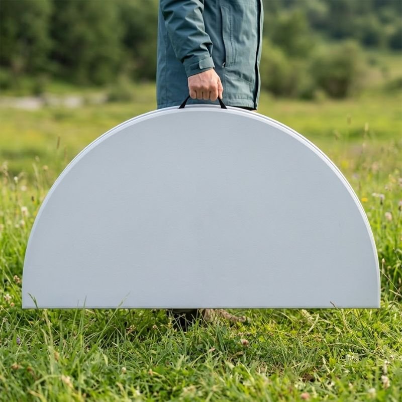 - Στρογγυλή επιφάνεια κατασκευασμένη από πολυαιθυλένιο υψηλής πυκνότητας (HDPE), ιδιαίτερα ανθεκτικό υλικό που προσφέρει μεγάλη αντοχή στη φθορά, την υγρασία και την καθημερινή χρήση.