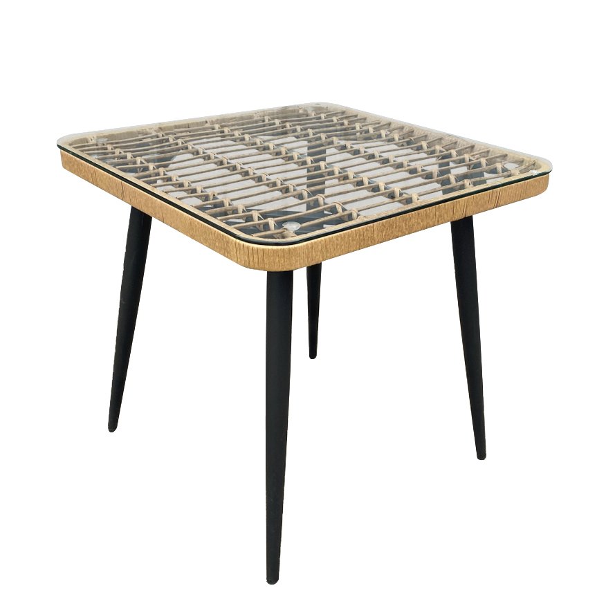 Τραπέζι Κήπου ArteLibre CALI Φυσικό/Μαύρο Μέταλλο/Rattan/Γυαλί 80x80x78cm