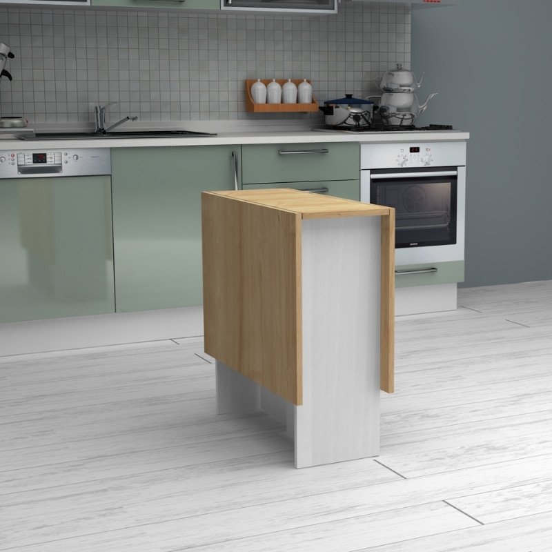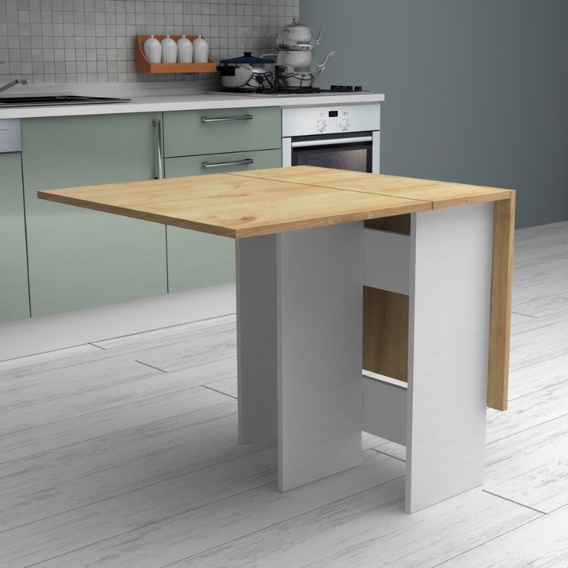 Τραπέζι Pepe Megapap επεκτεινόμενο χρώμα λευκό – φυσικό οξιάς 28(56+56)x77x75εκ.
