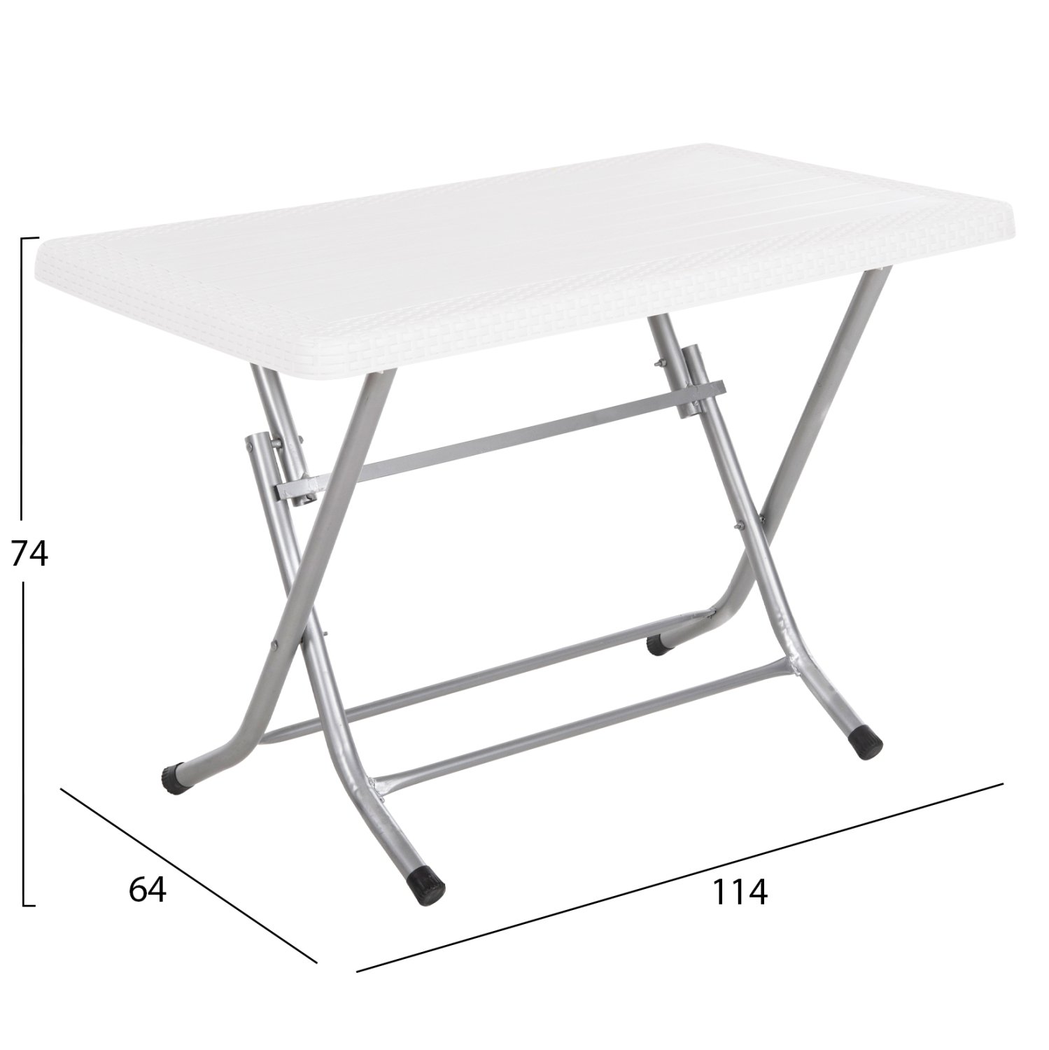 ΤΡΑΠΕΖΙ ΠΤΥΣΣΟΜΕΝΟ CONNY HM6146.03 ΛΕΥΚΟ ΠΟΛΥΠΡΟΠΥΛΕΝΙΟ ΟΨΗ RATTAN TOP-ΜΕΤΑΛΛΙΚΗ ΒΑΣΗ 114x64x74Υεκ.