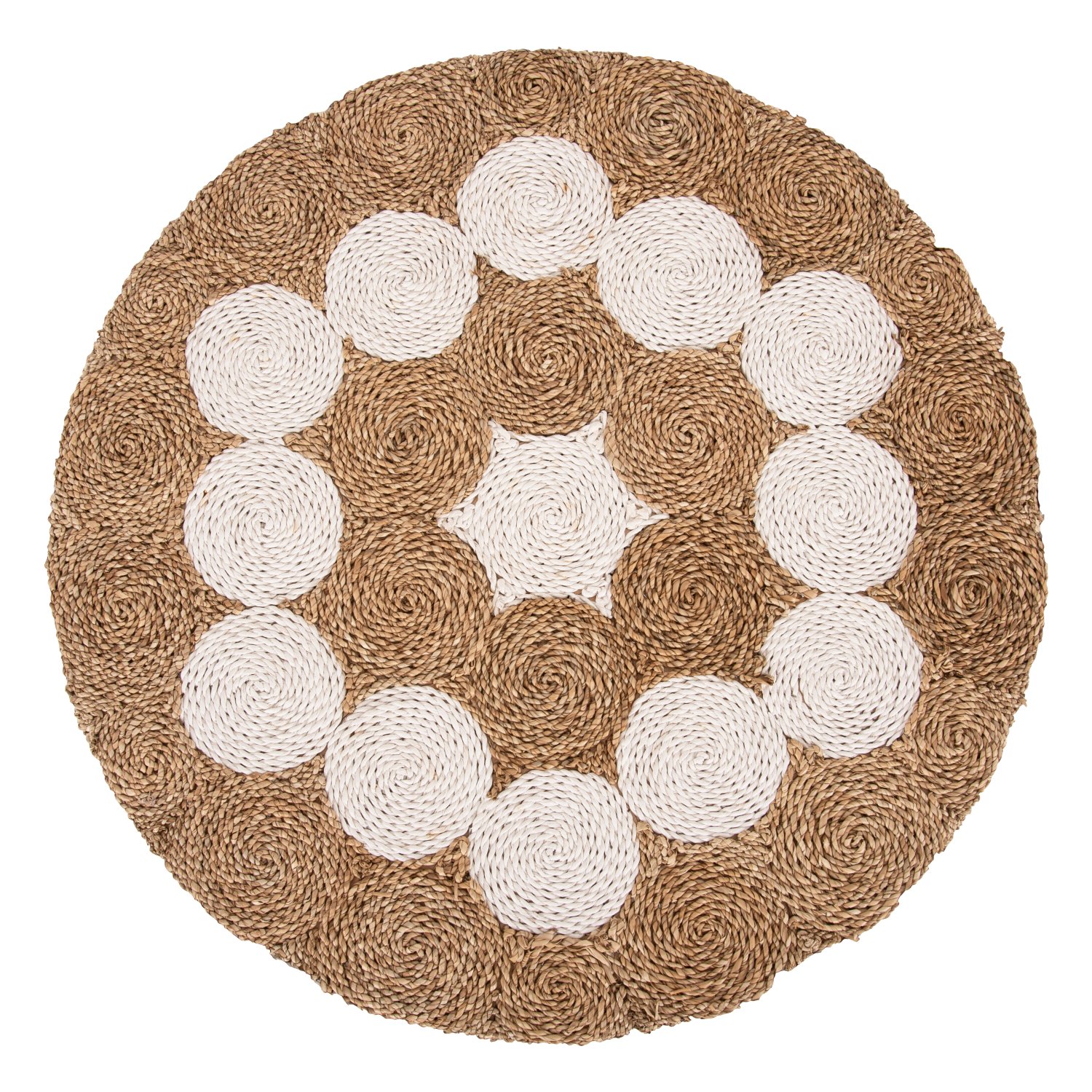ΤΡΑΠΕΖΙ ΣΑΛΟΝΙΟΥ HM7825 ΞΥΛΟ ΤΕΑΚ ΚΑΙ SEAGRASS ΣΕ ΦΥΣΙΚΟ & ΛΕΥΚΟ Φ81×45Υεκ.