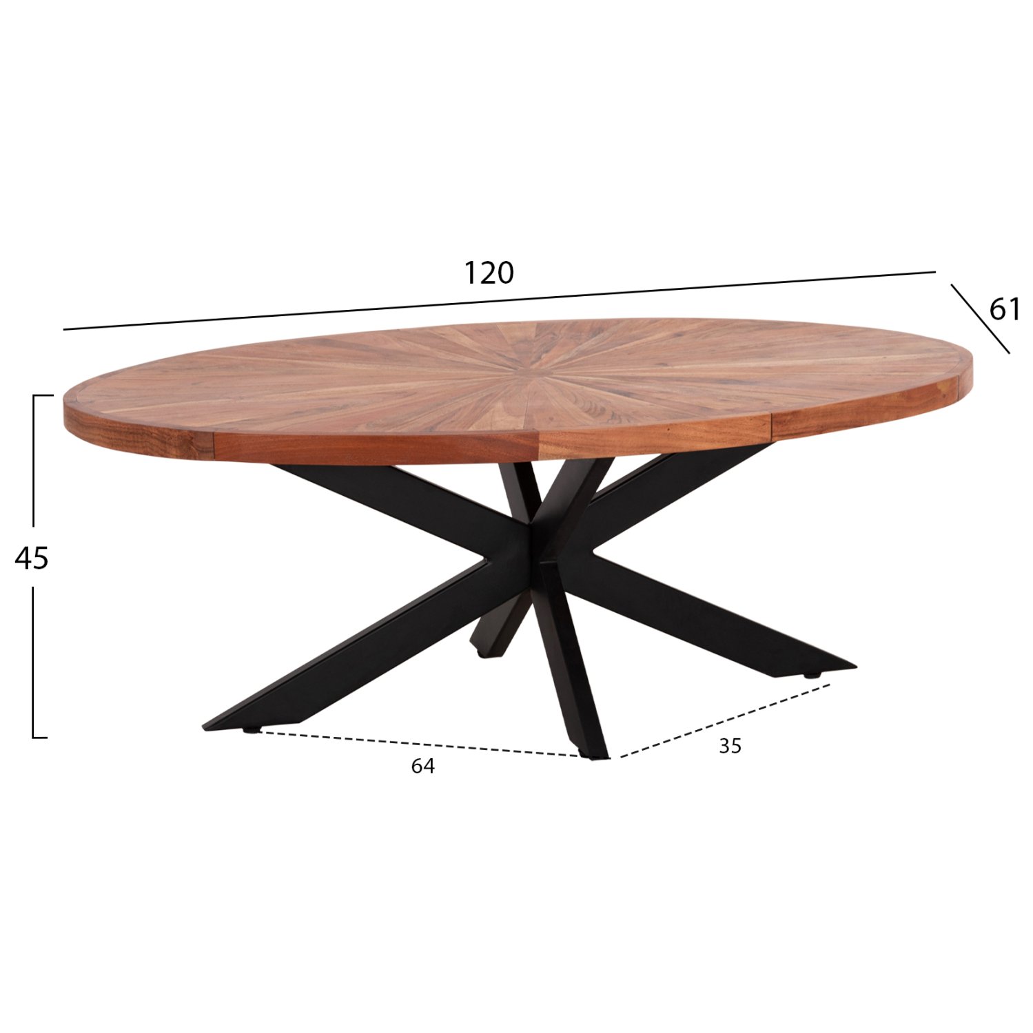 ΤΡΑΠΕΖΙ ΣΑΛΟΝΙΟΥ ΟΒΑΛ MONTANA SUPERIOR HM9906 ΞΥΛΟ ΑΚΑΚΙΑΣ-ΜΕΤΑΛΛΟ 120x61x45Υεκ.