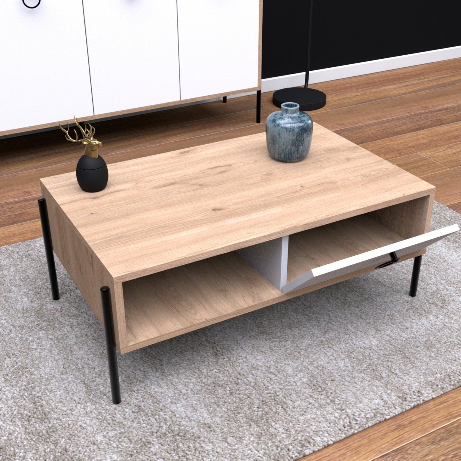 Κατασκευασμένο από υψηλής ποιότητας μελαμίνη, πάχους 18mm, και μεταλλικά πόδια με αντοχή στη φθορά και το χρόνο.