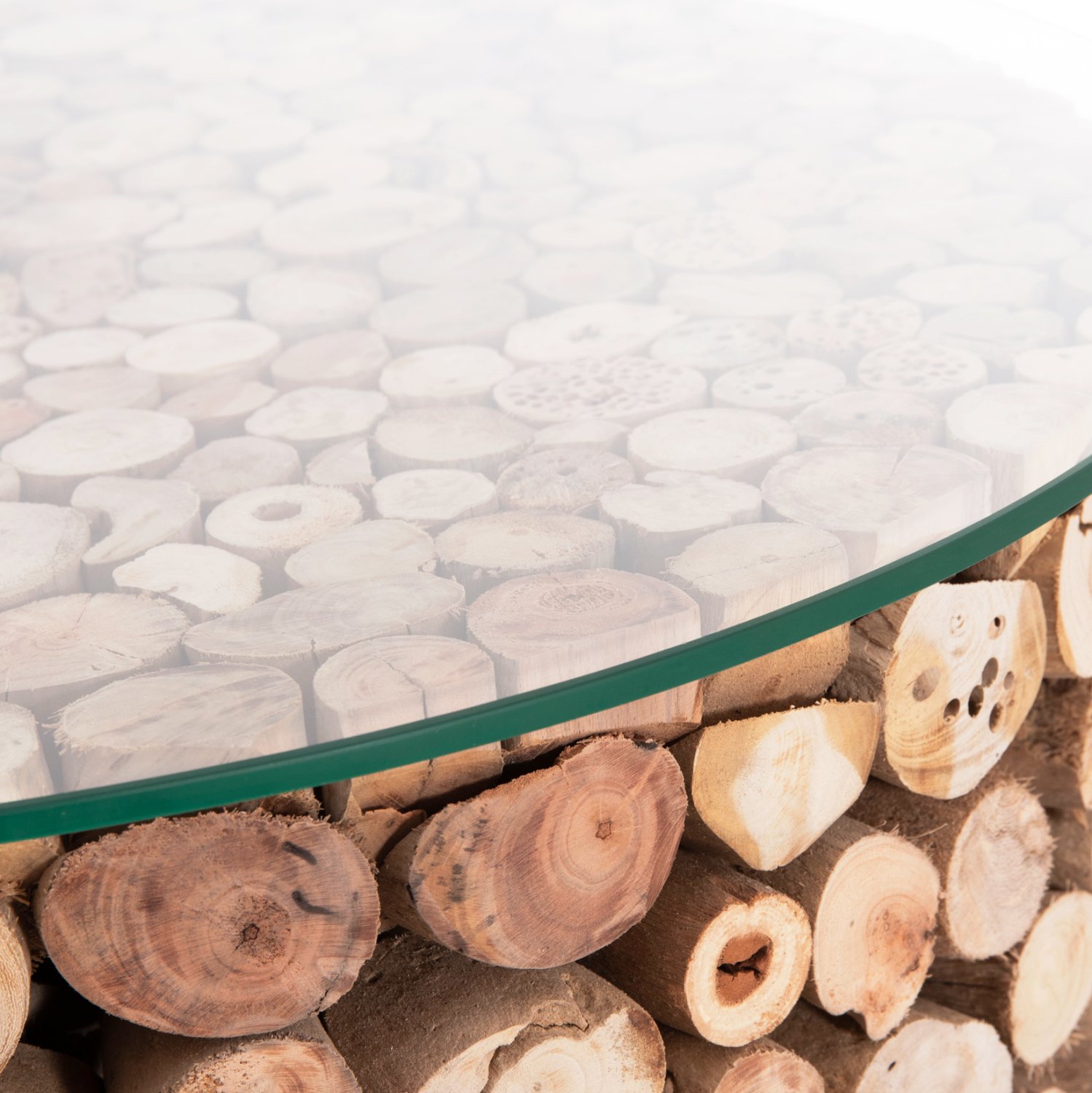 ΤΡΑΠΕΖΙ ΣΑΛΟΝΙΟΥ ΣΤΡΟΓΓΥΛΟ SPARROW HM9963 DRIFTWOOD–ΓΥΑΛΙ Φ65×51,5Υεκ.