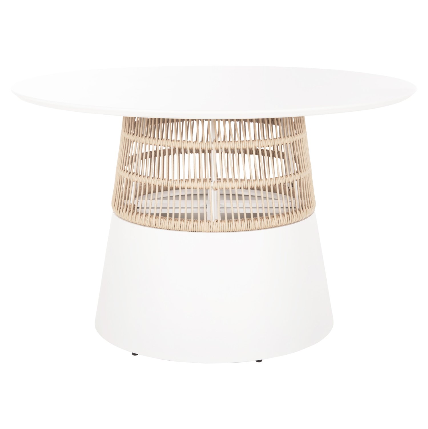 Το SAEID είναι ένα στρογγυλό (στυλ ροτόντα) τραπέζι αλουμινίου σε ικανοποιητικές διαστάσεις σε ΛΕΥΚΟ χρώμα. Το τραπέζι στηρίζεται σε μια κωνική και κυλινδρική κατασκευή από ΛΕΥΚΟ αλουμίνιο και σχοινί σε ΜΠΕΖ χρώμα. Αυτό το τραπέζι θα αναβαθμίσει αισθητικά κάθε εξωτερικό επαγγελματικό χώρο, είτε ακόμα και στο σπίτι, ενώ μπορεί να ταιριάξει με πολλά διαφορετικά στυλ και χρώματα, όπως και με διαφορετικά στυλ καρέκλας.