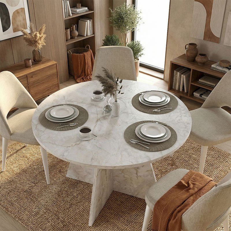 Τραπέζι Tailor Megapap χρώμα λευκό εφέ μαρμάρου Ø100×75,7εκ.