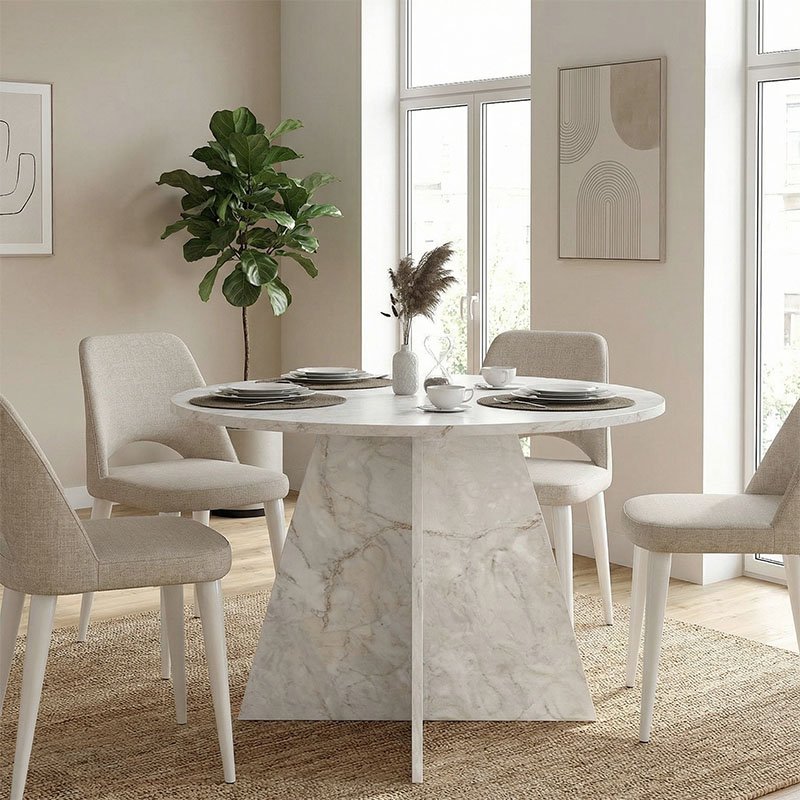 Τραπέζι Tailor Megapap χρώμα λευκό εφέ μαρμάρου Ø120×75,7εκ.