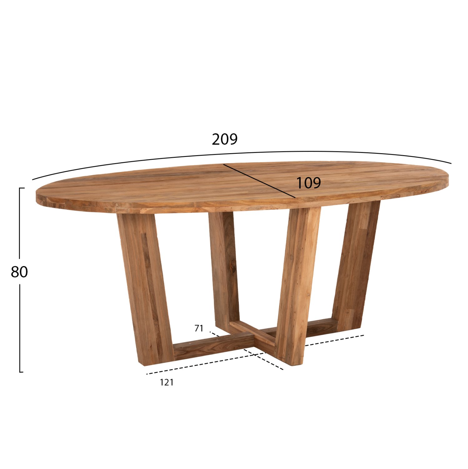 ΤΡΑΠΕΖΙ ΤΡΑΠΕΖΑΡΙΑΣ CARIB ΟΒΑΛ HM9558 ΑΠΟ ΞΥΛΟ RECYCLED ΤΕΑΚ 209x109x80Yεκ.