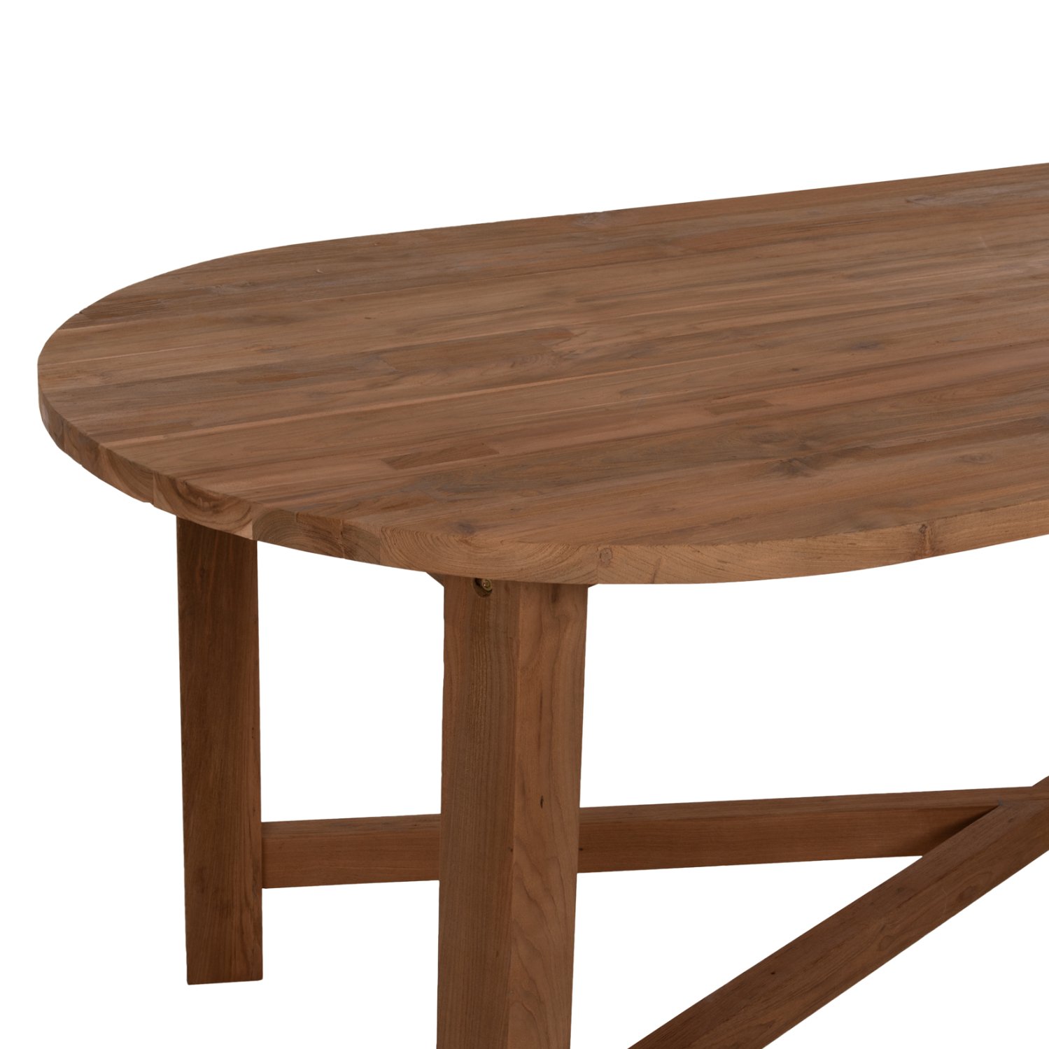 Το τραπέζι είναι κατασκευασμένο από μασίφ ανακυκλωμένο ξύλο ΤΕΑΚ. Το μασίφ συνιστά ένα είδος ξύλου, καθαρό και ατόφιο, και είναι η πιο ακριβή επιλογή σε είδος ξύλου και ξεχωρίζει για την διαχρονική αισθητική του. Το αποτέλεσμα που προσφέρει στον κάτοχό του είναι πραγματικά μοναδικό.