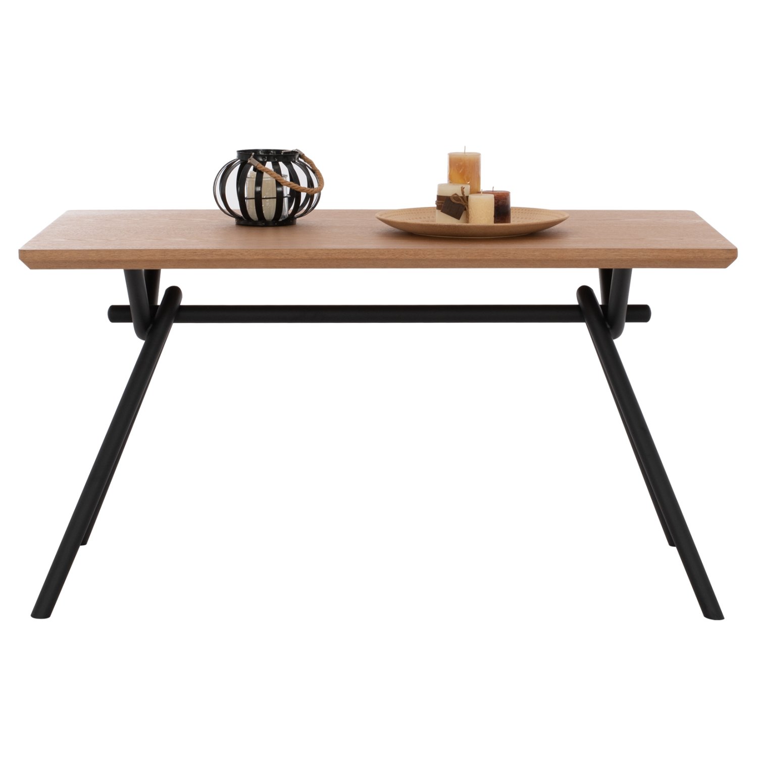 Το ΗΜ9302.01 είναι ένα μεγάλο ορθογώνιο τραπέζι για την τραπεζαρία, με επιφάνεια από MDF με καπλαμά από ξύλο δρυός σε χρώμα ΗΟΝΕΥ ΟΑΚ και στυλ ρουστίκ. Η επιφάνεια αυτή είναι «φαλτσοκομμένη»(δεν είναι δηλαδή τετραγωνισμένη στις ακμές της) και στηρίζεται σε έναν μαύρο μεταλλικό σκελετόπλαίσιο με πόδια σε σχήμα πλαγιαστού Λ. Πρόκειται για ένα όμορφο τραπέζι σε μεγάλη διάσταση και με όμορφη διχρωμία, με αποτέλεσμα να μπορεί να ταιριάξει αισθητικά σχεδόν σε κάθε ανάλογο χώρο.