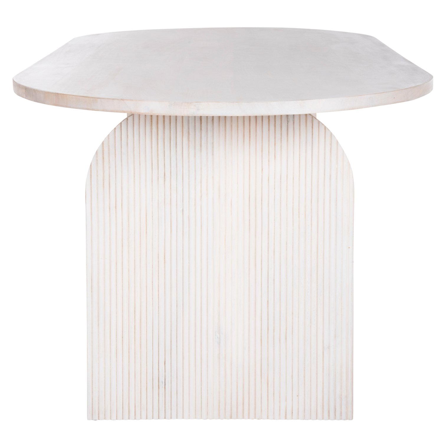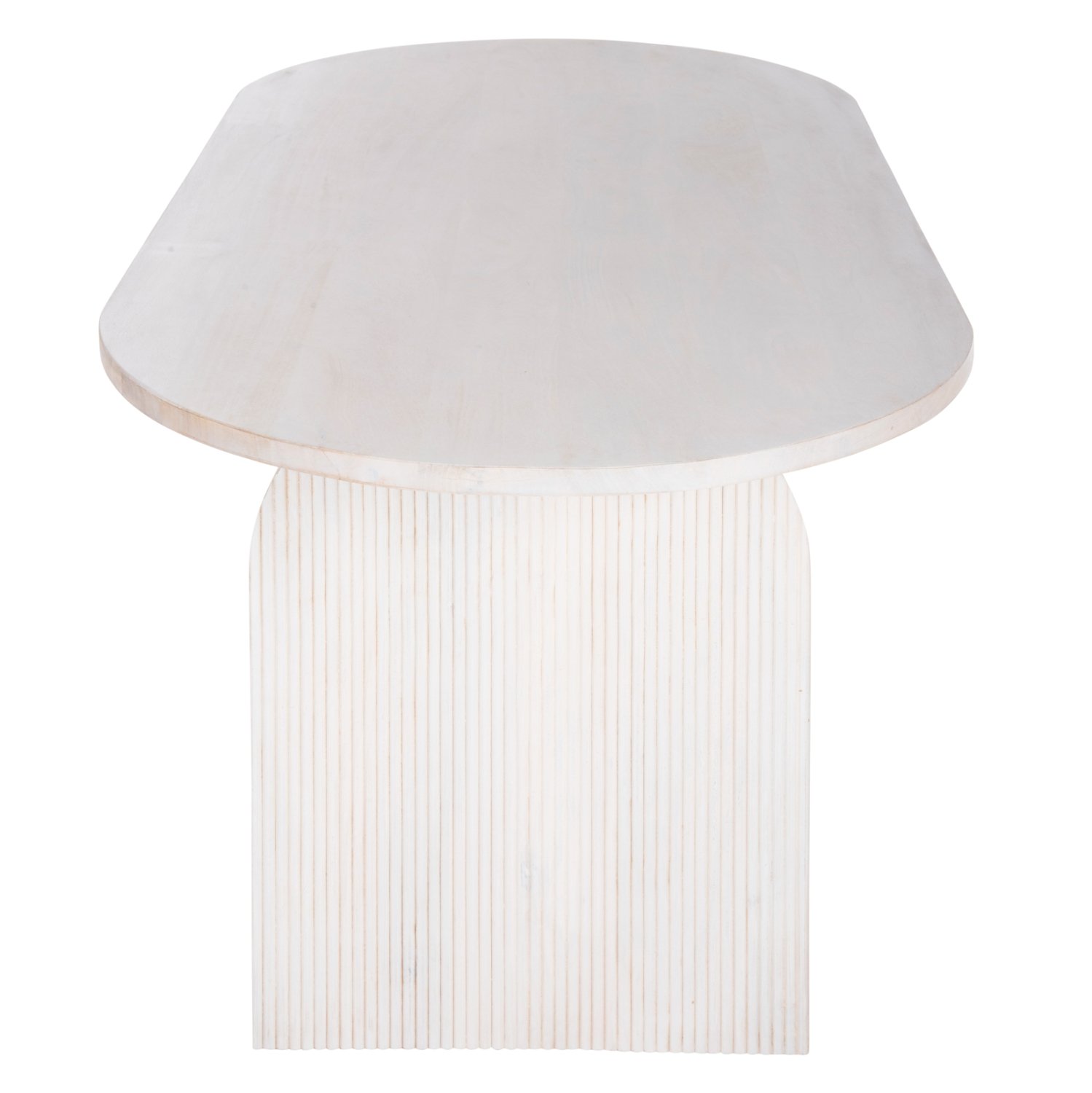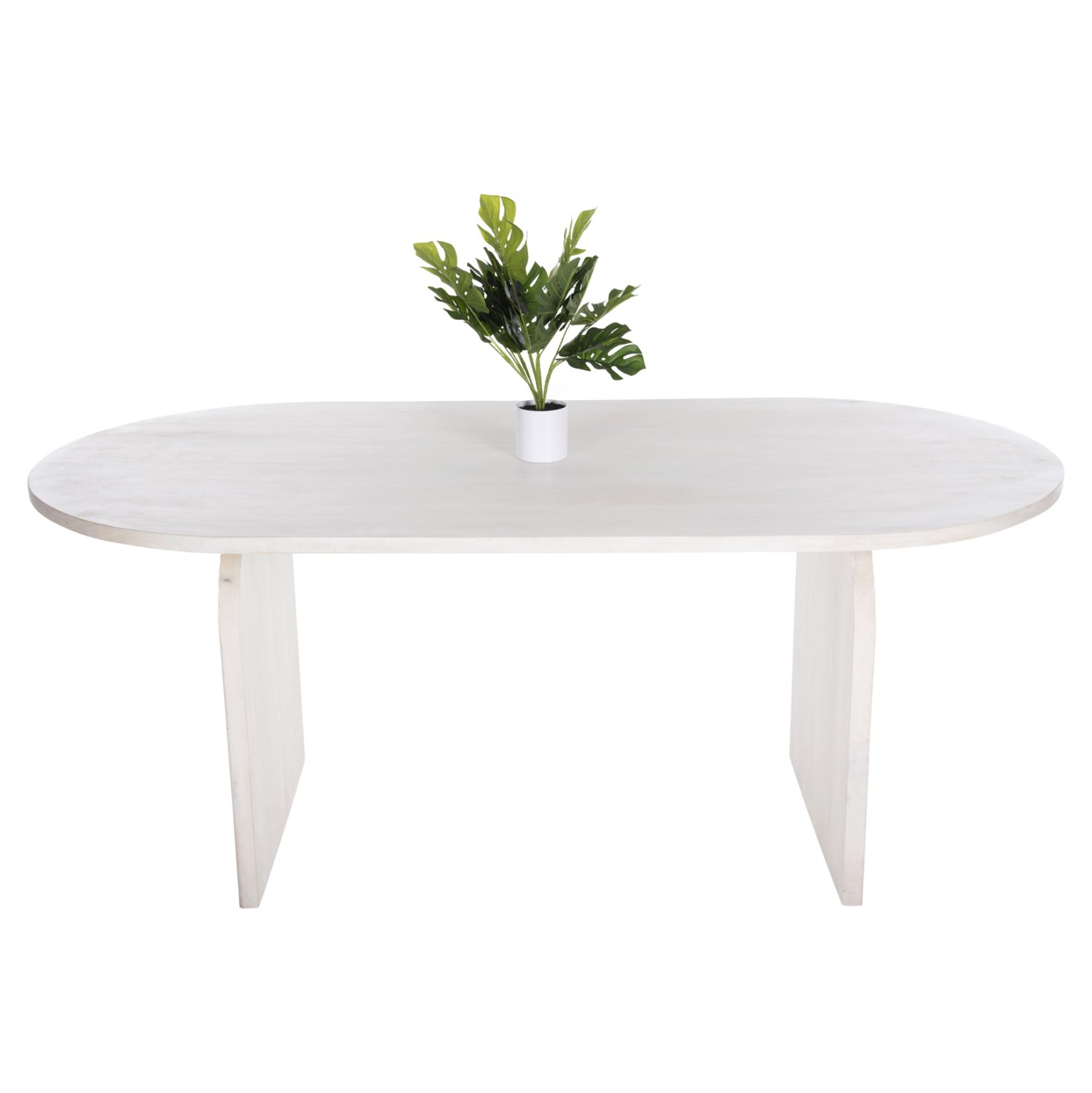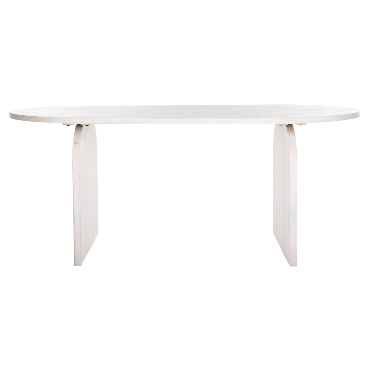 Ανακαλύψτε το τραπέζι τραπεζαρίας HONKY που είναι εξολοκλήρου κατασκευασμένο από μασίφ ξύλο mango σε ΛΕΥΚΟ χρώμα. To σχήμα είναι τυπικό οβάλ και στηρίζεται σε 2 μασίφ αψίδες από το ίδιο ξύλο και του ίδιου χρώματος.