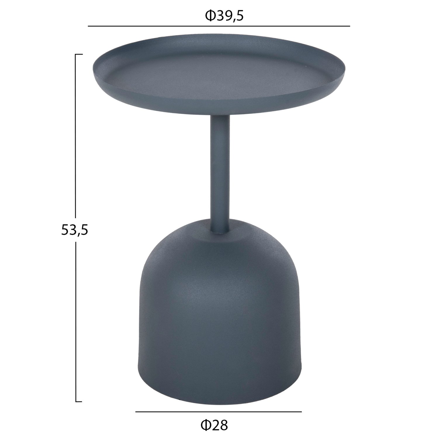 Το βοηθητικό τραπεζάκι DELBEL για το σαλόνι είναι μια από τις νέες προσθήκες στην γκάμα μας. Πρόκειται για ένα μεταλλικό τραπεζάκι στρογγυλό με κυλινδρική βάση σε σχήμα καμπάνας. Το χρώμα του είναι ΣΚΟΥΡΟ ΜΠΛΕ όπως και η επιφάνεια. Η ιδιαιτερότητα αυτού του τραπεζιού είναι ότι η περίμετρος της επιφάνειας είναι υπερυψωμένη και μοιάζει με πιάτο. Ιδανικό τόσο για το σπίτι, όσο και για επαγγελματικούς χώρους.