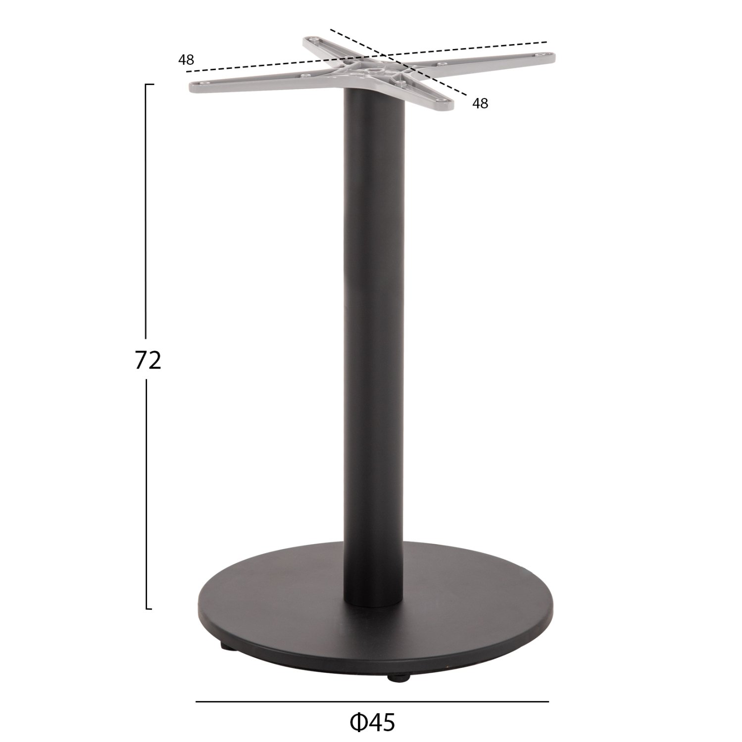 ΒΑΣΗ ΤΡΑΠΕΖΙΟΥ ΑΛΟΥΜΙΝΙΟΥ ΣΤΡΟΓΓΥΛΗ ΜΑΥΡΟ ΜΑΤ HM476.01 ΣΤΑΥΡΟΣ 48Χ48εκ Φ45Χ72Υεκ.