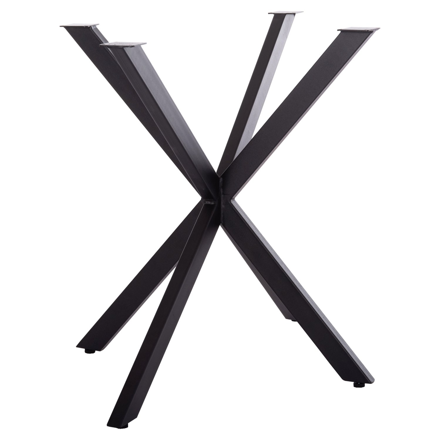 Αυτή είναι μια βάση/πόδια για τραπέζι σε ΜΑΥΡΟ ΜΑΤ χρώμα. Είναι μεταλλική σε διπλοχιαστί υλοποίηση, ενώ το χαρακτηριστικό που κάνει αυτή την βάση ιδιαίτερα πρακτική είναι ότι στο κάτω μέρος των ποδιών διαθέτει ρυθμιστές ύψους (ρεγουλατόρους). Ιδανική πρόταση για συνδυασμό με επιφάνειες σχεδόν κάθε είδους, όπως βερσαλίτες, HPL, MDF, κτλ.