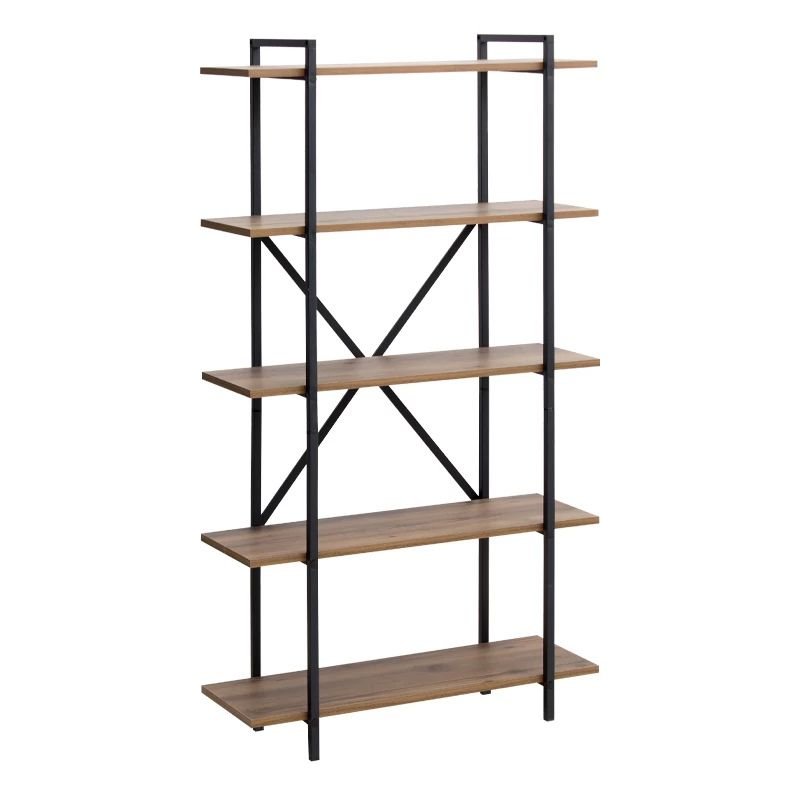 Βιβλιοθήκη Ernesto Megapap μεταλλική – μελαμίνης χρώμα μαύρο – καπνιστή καρυδιά 90×35,5×160εκ.