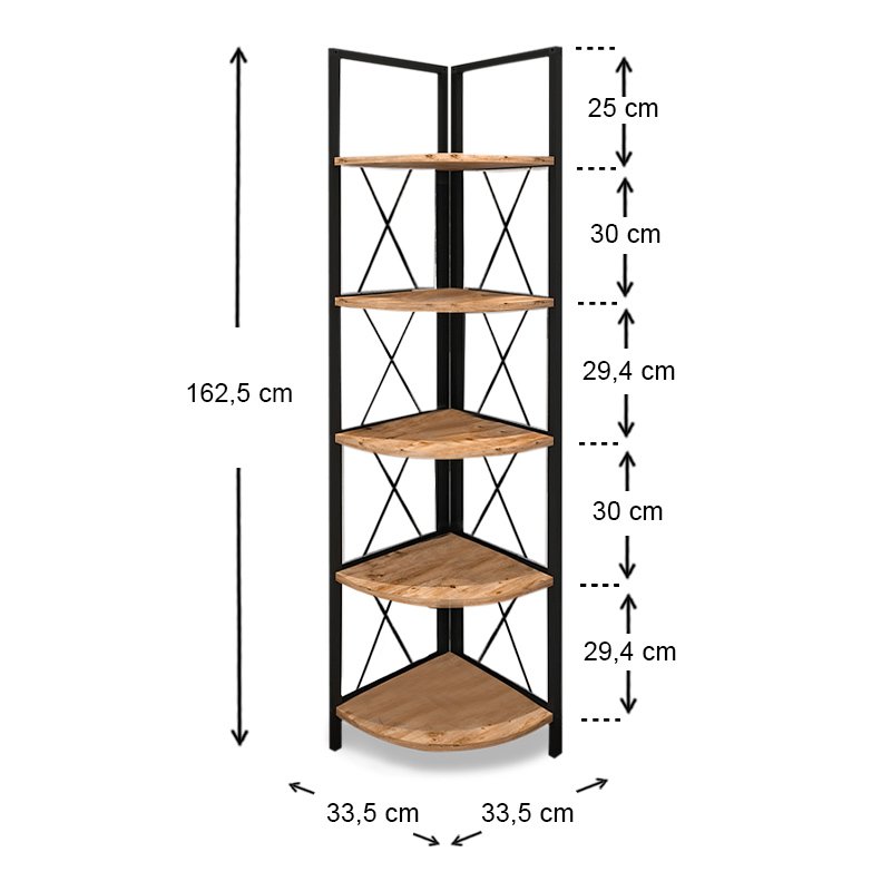 Βιβλιοθήκη γωνιακή Kelsie Megapap χρώμα μαύρο – pine oak 33x33x162εκ.
