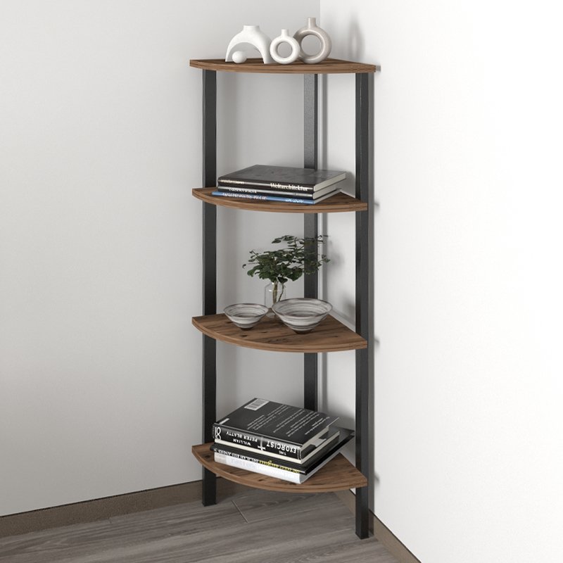 Βιβλιοθήκη γωνιακή Lela Megapap χρώμα μαύρο – καπνιστή καρυδιά 34x34x125εκ.