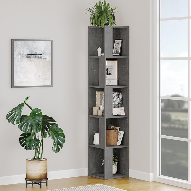 Βιβλιοθήκη γωνιακή Piano Megapap από μελαμίνη χρώμα γκρι ρετρό 31,4×31,4×158,9εκ.