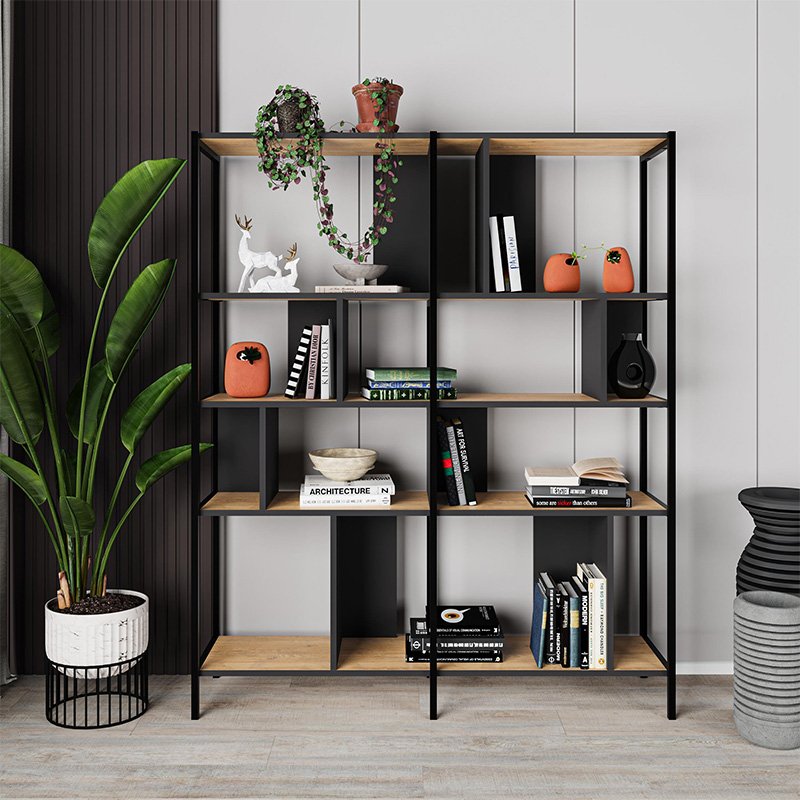 Βιβλιοθήκη Maxi Megapap χρώμα sapphire oak – silky black 144x35x175εκ.
