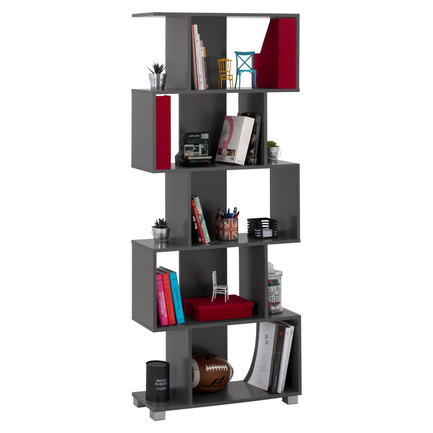 Διαθέτει πέντε ράφια με κάθετα χωρίσματα.