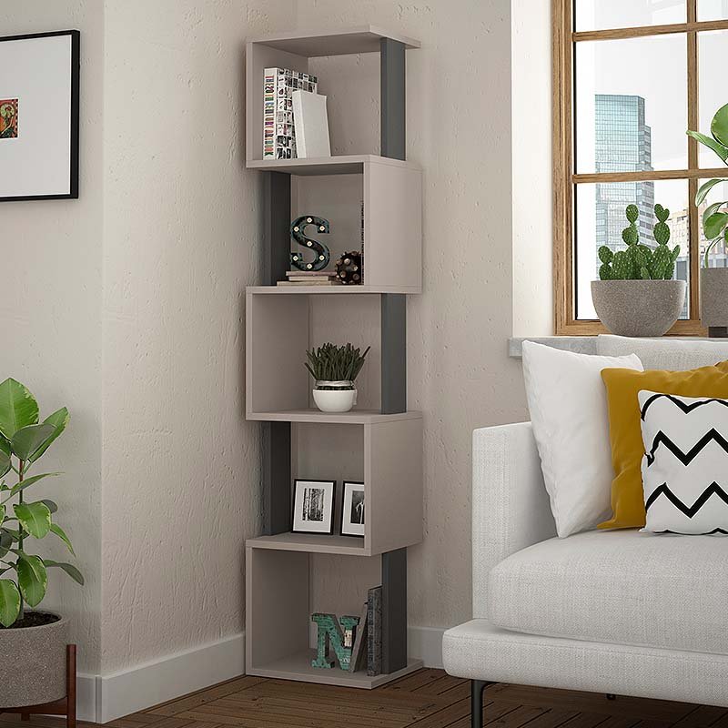 Βιβλιοθήκη Piri Megapap χρώμα ανοιχτή μόκα – ανθρακί 35x30x161εκ.