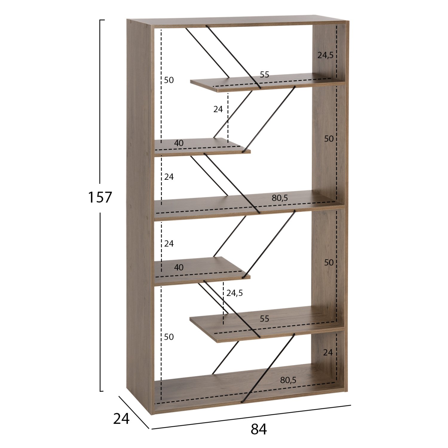 Διαστάσεις ραφιού Ζ: 80,5x24x24-50Υ εκ.