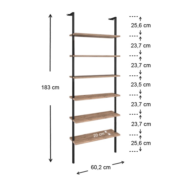 Βιβλιοθήκη τοίχου Madison Megapap μεταλλική – μελαμίνης χρώμα μαύρο – pine oak 60x20x183εκ.