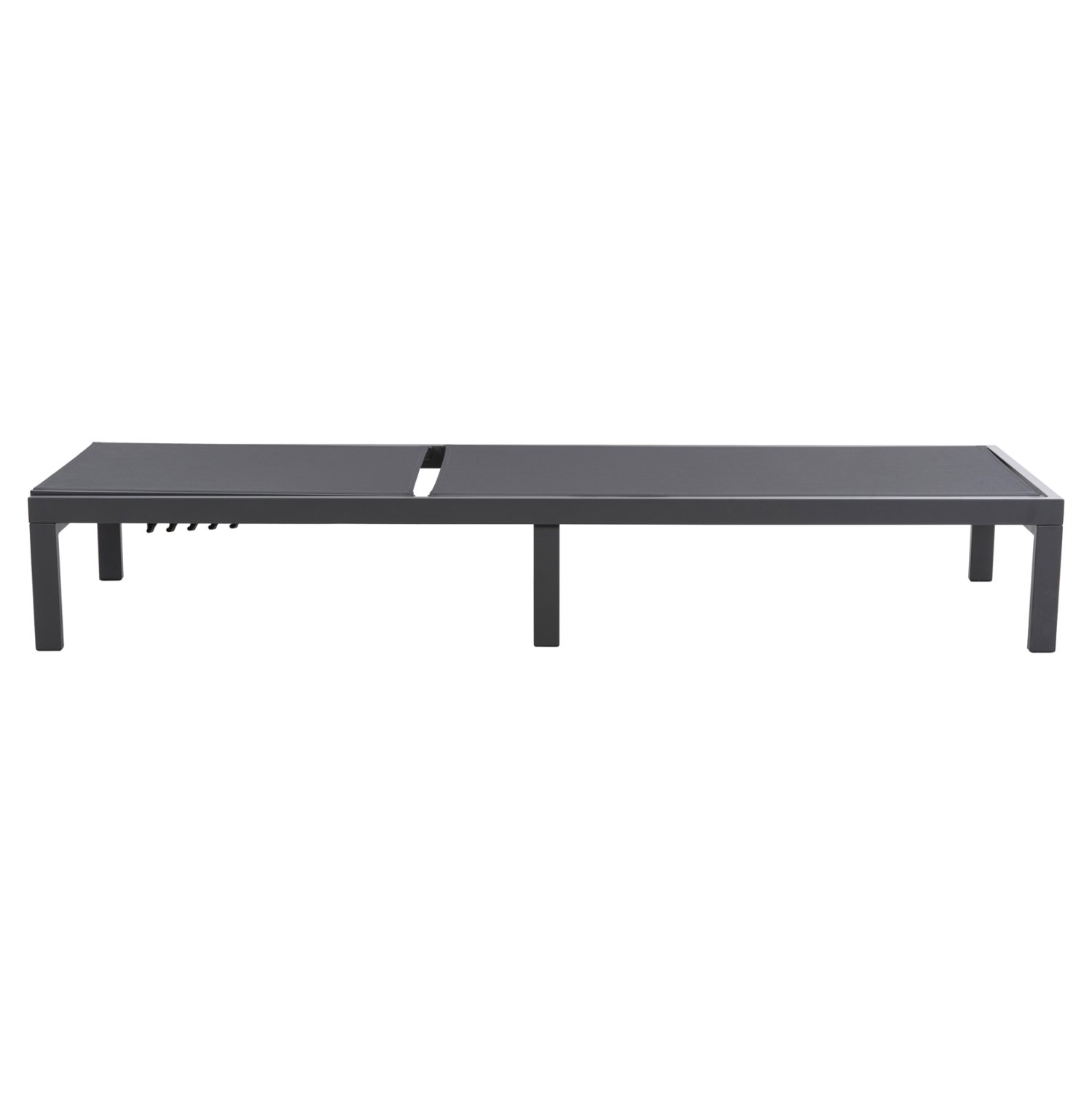 Η επαγγελματική ξαπλώστρα παραλίας THATCHER σε ΑΝΘΡΑΚΙ χρώμα είναι όμορφη και πολυτελής. Είναι κατασκευασμένη από αλουμίνιο και textilene επίσης σε ΑΝΘΡΑΚΙ χρώμα ενώ διαθέτει και έξτρα πόδια στην μέση του μήκους της για ακόμα μεγαλύτερη στιβαρότητα. Σχεδιαστικά οι «γραμμές» της είναι ξεκάθαρες και τετραγωνισμένες. Η σκαλιέρα έχει 5 επίπεδα (μαζί με την flat)