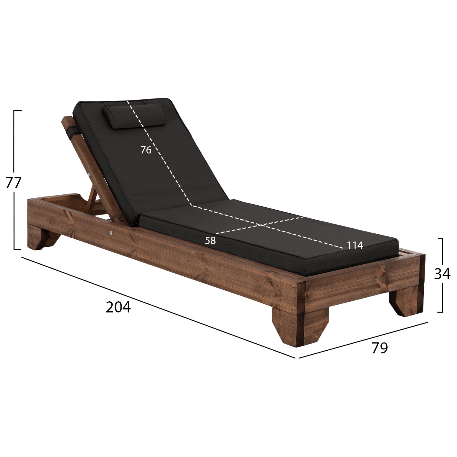 -Το μαξιλάρι που συνοδεύει την ξαπλώστρα είναι από αφρό μέτριας σκληρότητας ενώ το κάλυμμα είναι από textilene σε ΜΑΥΡΟ χρώμα. Δένεται στην ξαπλώστρα με κορδόνια και διαθέτει μαξιλαράκι κεφαλής.