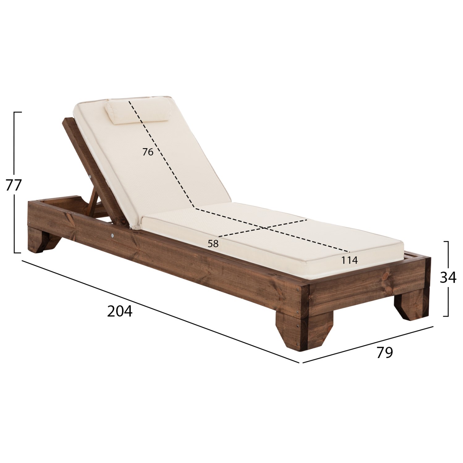 -Το μαξιλάρι που συνοδεύει την ξαπλώστρα είναι από αφρό μέτριας σκληρότητας ενώ το κάλυμμα είναι από textilene σε ΕΚΡΟΥ χρώμα. Δένεται στην ξαπλώστρα με κορδόνια και διαθέτει μαξιλαράκι κεφαλής.