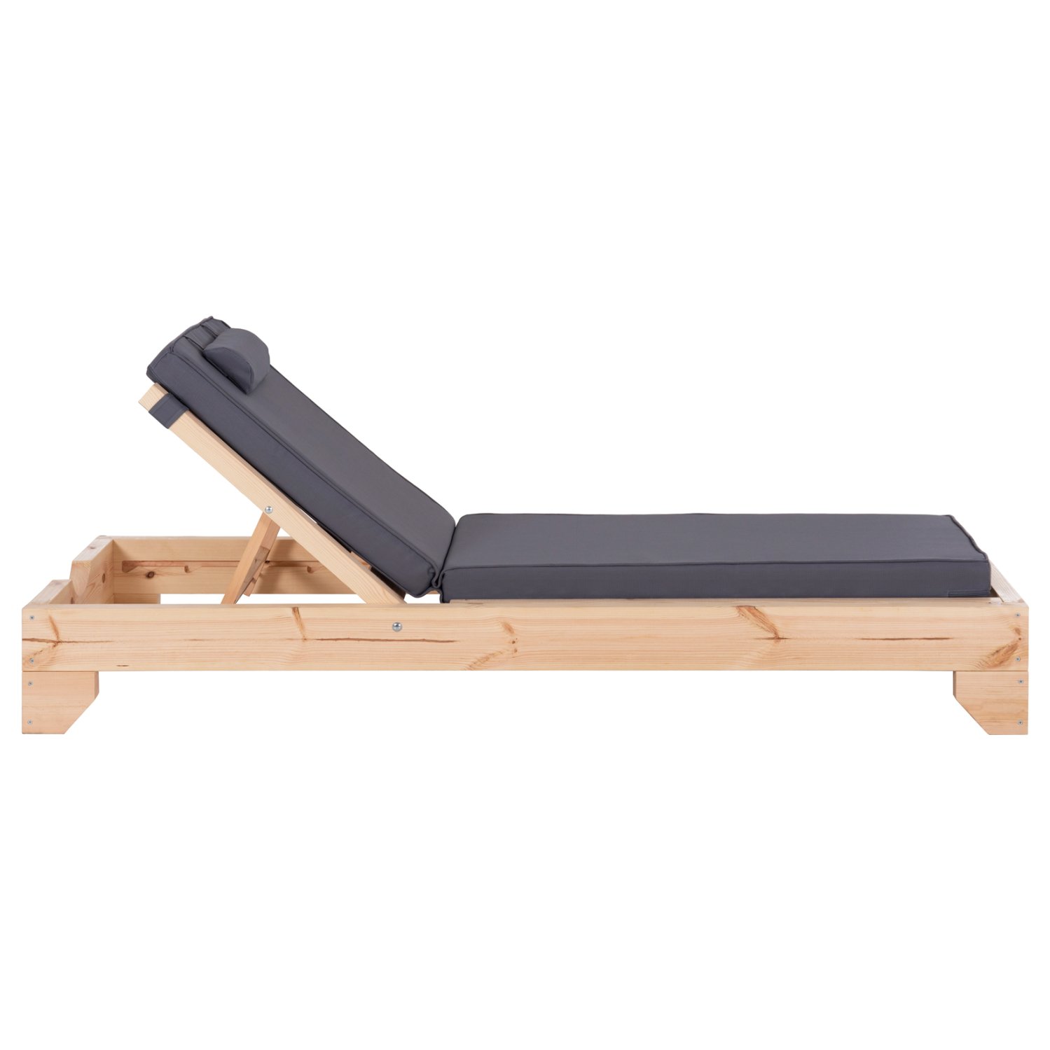 -Ολόκληρη η ξαπλώστρα έχει κατασκευαστεί από ξύλο πεύκου με εμποτισμό και επιπλέον στρώση με βερνίκι νερού. Το πεύκο είναι ένα μαλακό, λευκό ή ανοιχτό κίτρινο ξύλο το οποίο είναι ελαφρύ σε βάρος με ευθύγραμμα νερά ξύλου. Αντέχει στη συρρίκνωση, διόγκωση και κάμψη. Ο εμποτισμός υπό την ευρεία έννοια είναι ο χρωματισμός του ξύλου (συνήθως βερνίκια) με την μέθοδο της εμβάπτισης.