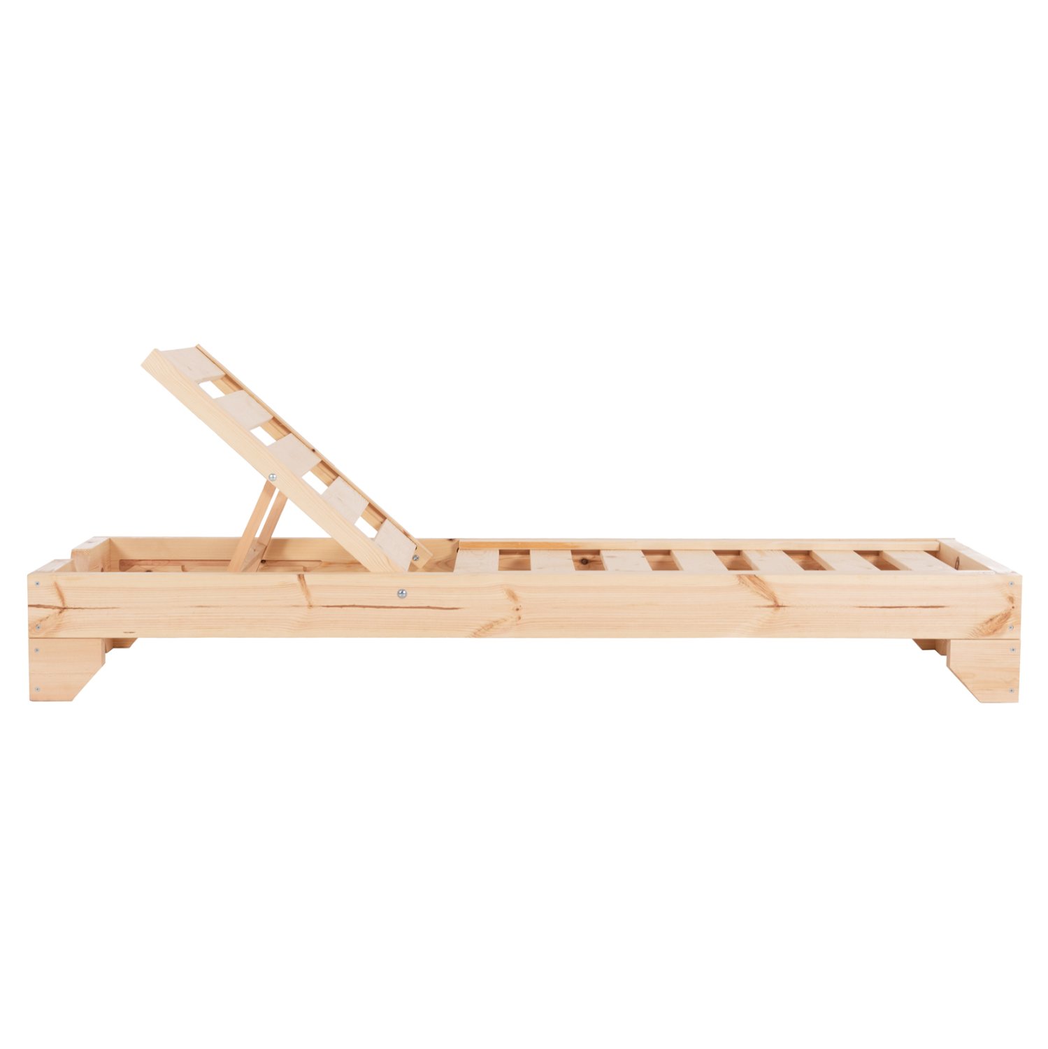 -Ολόκληρη η ξαπλώστρα έχει κατασκευαστεί από ξύλο πεύκου με εμποτισμό και επιπλέον στρώση με βερνίκι νερού. Το πεύκο είναι ένα μαλακό, λευκό ή ανοιχτό κίτρινο ξύλο το οποίο είναι ελαφρύ σε βάρος με ευθύγραμμα νερά ξύλου. Αντέχει στη συρρίκνωση, διόγκωση και κάμψη. Ο εμποτισμός υπό την ευρεία έννοια είναι ο χρωματισμός του ξύλου (συνήθως βερνίκια) με την μέθοδο της εμβάπτισης.