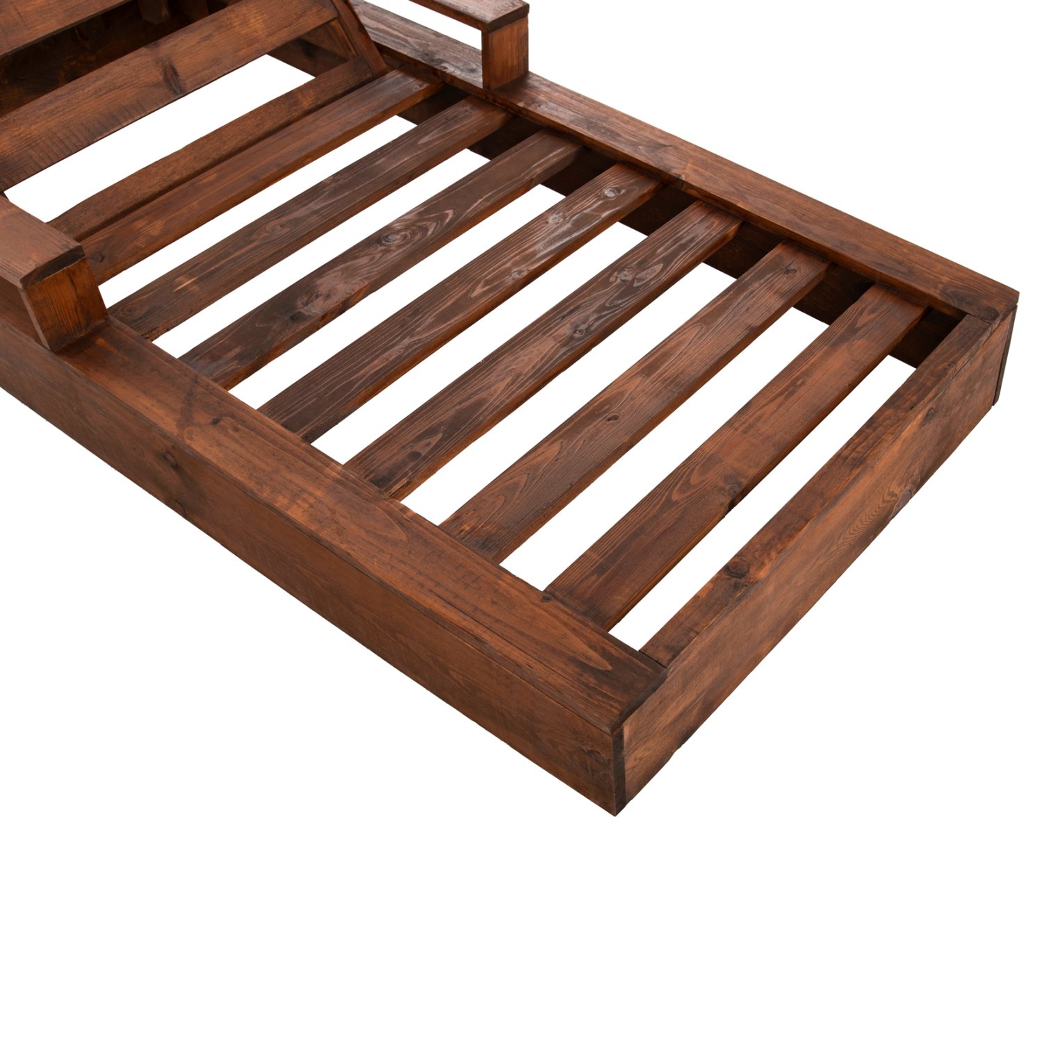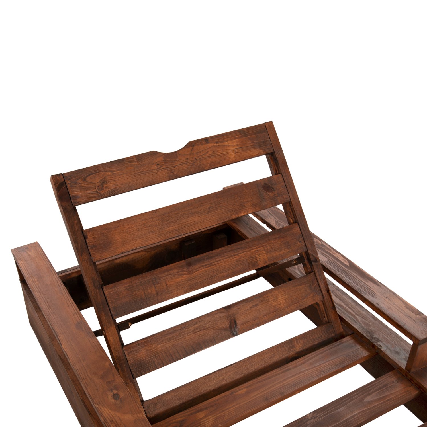 Η επαγγελματική ξαπλώστρα παραλίας βαρέως τύπου ΜΑΚΕΔΟΝΙΑ της εταιρίας μας σε ΚΑΡΥΔΙ χρώμα είναι μια μοντέρνα και πολυτελής πρόταση για την παραλία. Στηρίζεται σε 4 πολύ χαμηλά πόδια στις 4 γωνίες και έχει περιμετρικά «ποδιά». Το επιπλέον χαρακτηριστικό γνώρισμα αυτής της ξαπλώστρας είναι τα εξτρά φαρδιά μπράτσα που διαθέτει και προσδίδουν αίσθηση πολυτέλειας και άνεσης. Η σκαλιέρα έχει 5 θέσεις ανάκλισης και σε συνδυασμό με τις μεγάλες διαστάσεις της, προσφέρει όλα αυτά που θέλετε από μια πολυτελή ξαπλώστρα παραλίας.