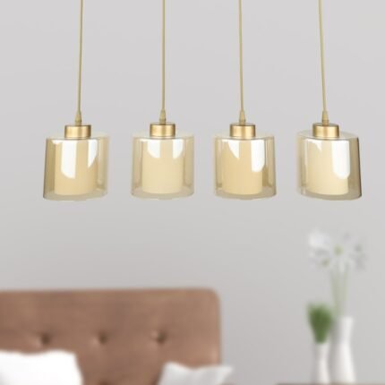 Φωτιστικό οροφής Kenedy Megapap E27 μεταλλικό – γυάλινο τετράφωτο χρώμα χρυσό Ø35×100εκ.