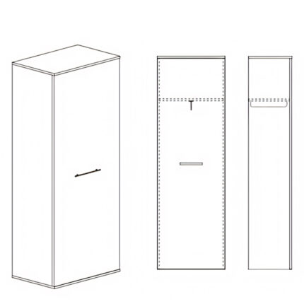 - Εσωτερικά διαθέτει δύο ράφια πάνω και κάτω και στην μέση χώρο με μεταλλική ράγα για το κρέμασμα ρούχων
