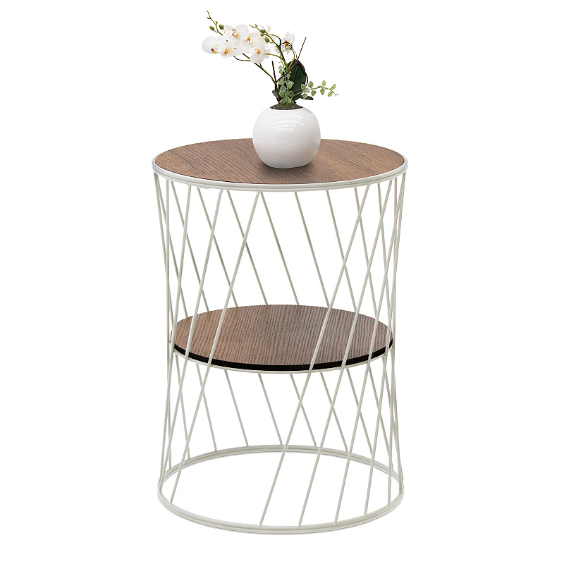 Τραπεζάκι βοηθητικό Jaspin Megapap μεταλλικό – Mdf χρώμα λευκό – καρυδί 32x32x44εκ.